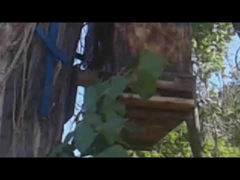 I hung and leveled to the swarm hive in the tree and security strapped it to the trunk of the tree. We do get some strong winds here. The hive opening is facing South south east.