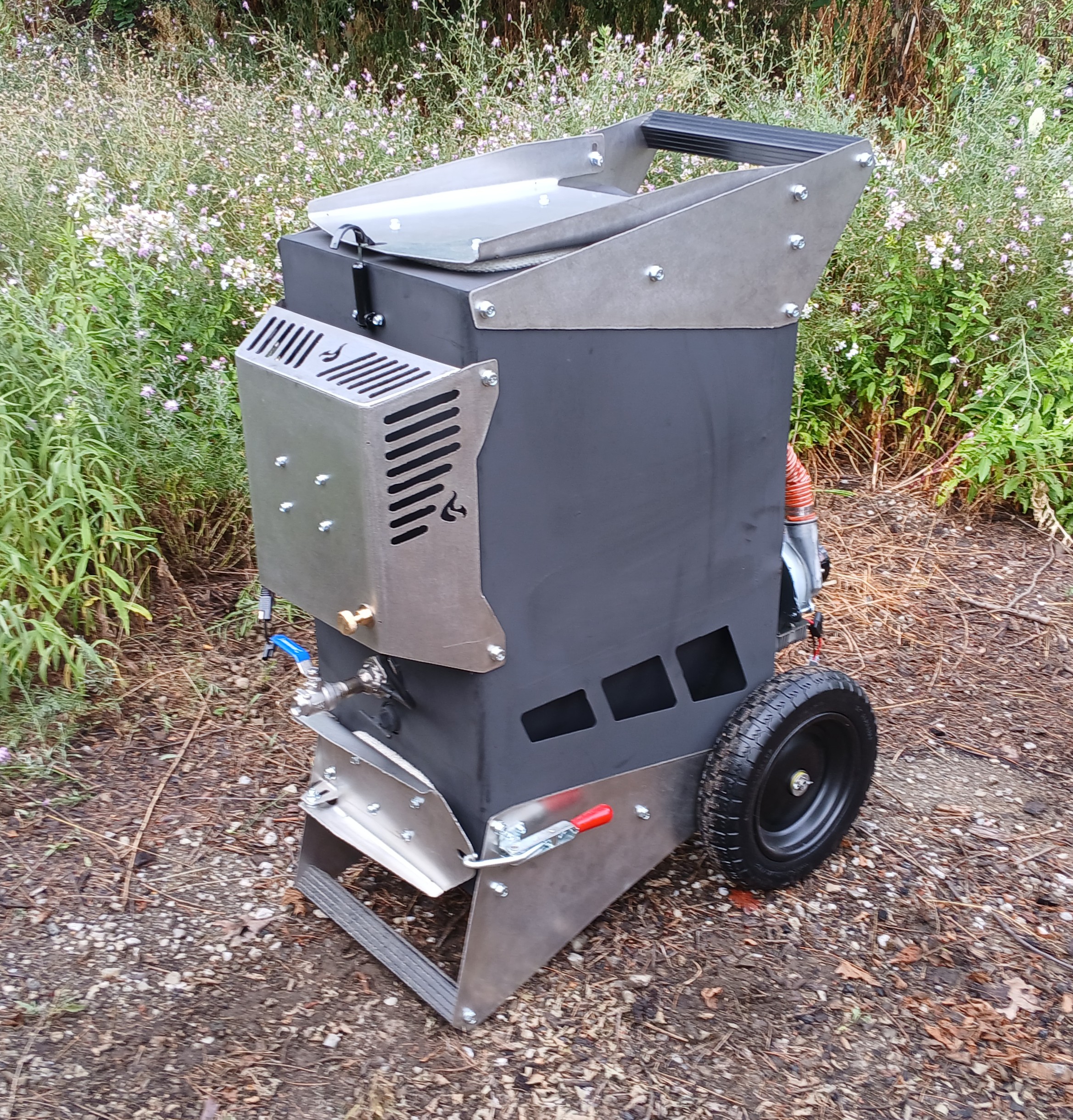 Havent you seen the charcoal units Ive been building the last 5 years. They have been this design since the start. I built that first prototype and not even month went by and scrapped the wood fueled system that spent the last 10 years of my life devleping. Just like that too! Ill never go back in fact his is the last revision of the CXF. There is just two more things I want to do. One is use a PWM speed control for the RV Pump rather than the flacher relay. But I dont think it will work as the presure switch likes to stall with full voltage. So I dont know until I try and then I simply want to add a water loop that will run along each side of the reactor to help preheat the water plus convert some of it to steam. As the flow is so low it will have plenty time to convert. Im going to build one last one for myself to keep and that it.