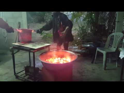 2: fill the stainless pot with crumbled charcoal, put the lid on