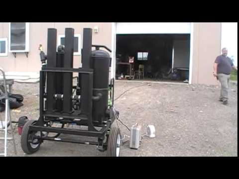 First stage cooling is the gasifier lower body. It also acts as a cyclone. The 3 cooling towers in the back have over a square meter of surface area. They also act as drop out boxes. Final filter acts as a cooler with another square meter of cooling surface…