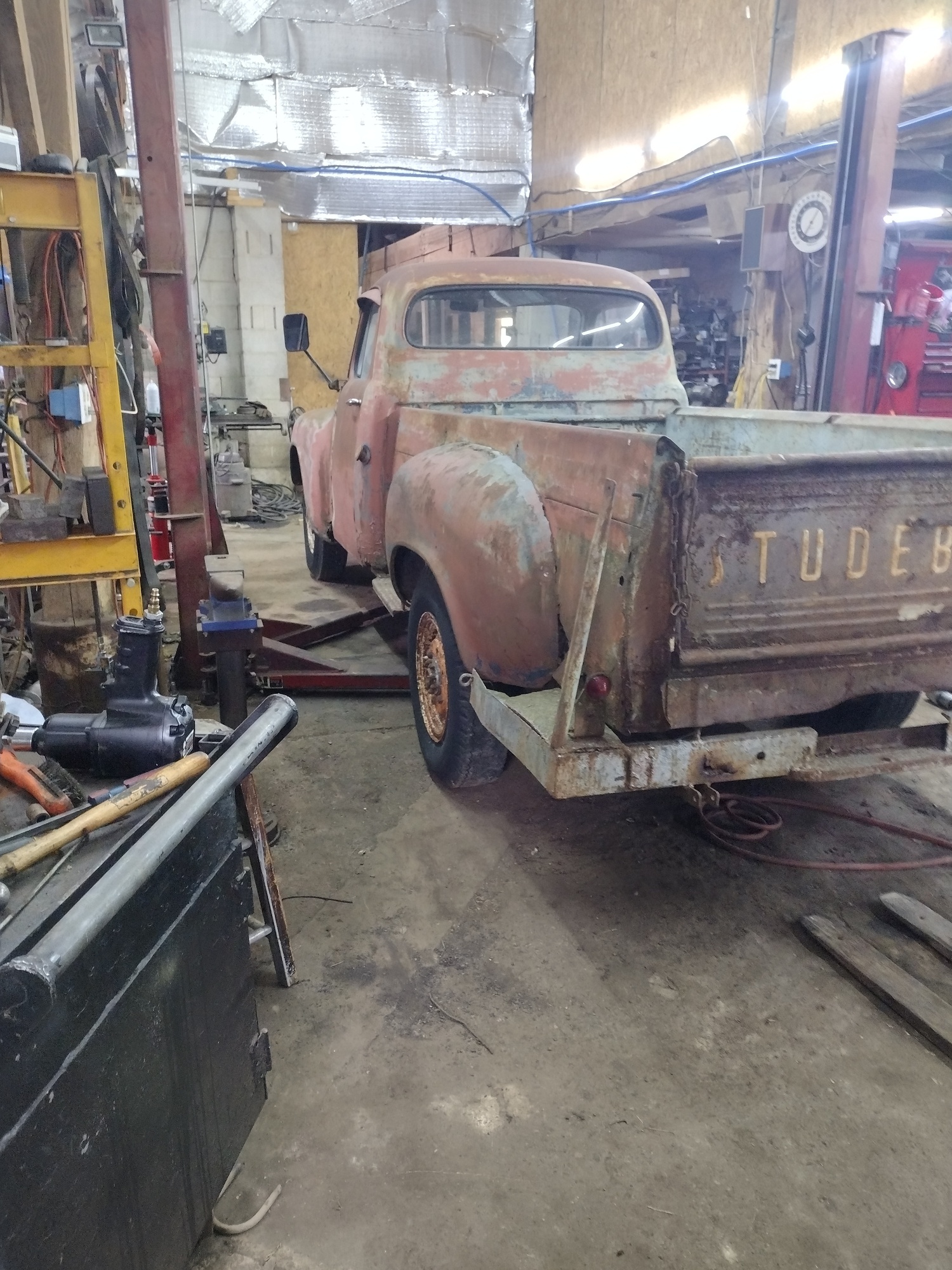 Its been a few months since my last post and as usual life got in the way again, my little hobby shop has turned into a full time business keeping local farmers going. Sold the 5.0 engine and transmission I was going to use for sport trac… and in process of installing a used transmission to get it ready to sell. I am considering getting my Kalamazoo speed truck ready to sell as well…will come with Generator and mig welder, torch set and tanks and a mobile stick welder mounted…has the electric winch and controls… will make someone a nice mobile welding unit. I am 72 now…don’t do a lot of mobile welding as most of the farmers either have welders and would rather I do the welding or they bring it to my shop. with my gardening that I keep increasing size, my new hobby of growing Fig trees for resale, and 2 green houses, plus my newest gasifier project a 1955 Studebaker 3/4 ton pickup with a 185 flathead 6cyl. only 66k miles…needs lots of sheet metal work coming from rust belt area…was in storage for 35 years before I got it…with some love freed up a couple stuck valves,new head gasket…this thing starts when you bump the key and runs perfect. someone put new shoes and drums all the way around and I just put new brake lines and hoses on it… spent 2k on all the rust repair panels soon to be installed it runs and is driveable… its a head turner now,but after the sheet metal work and the gasifier…should be a trophy winner at the local car shows.