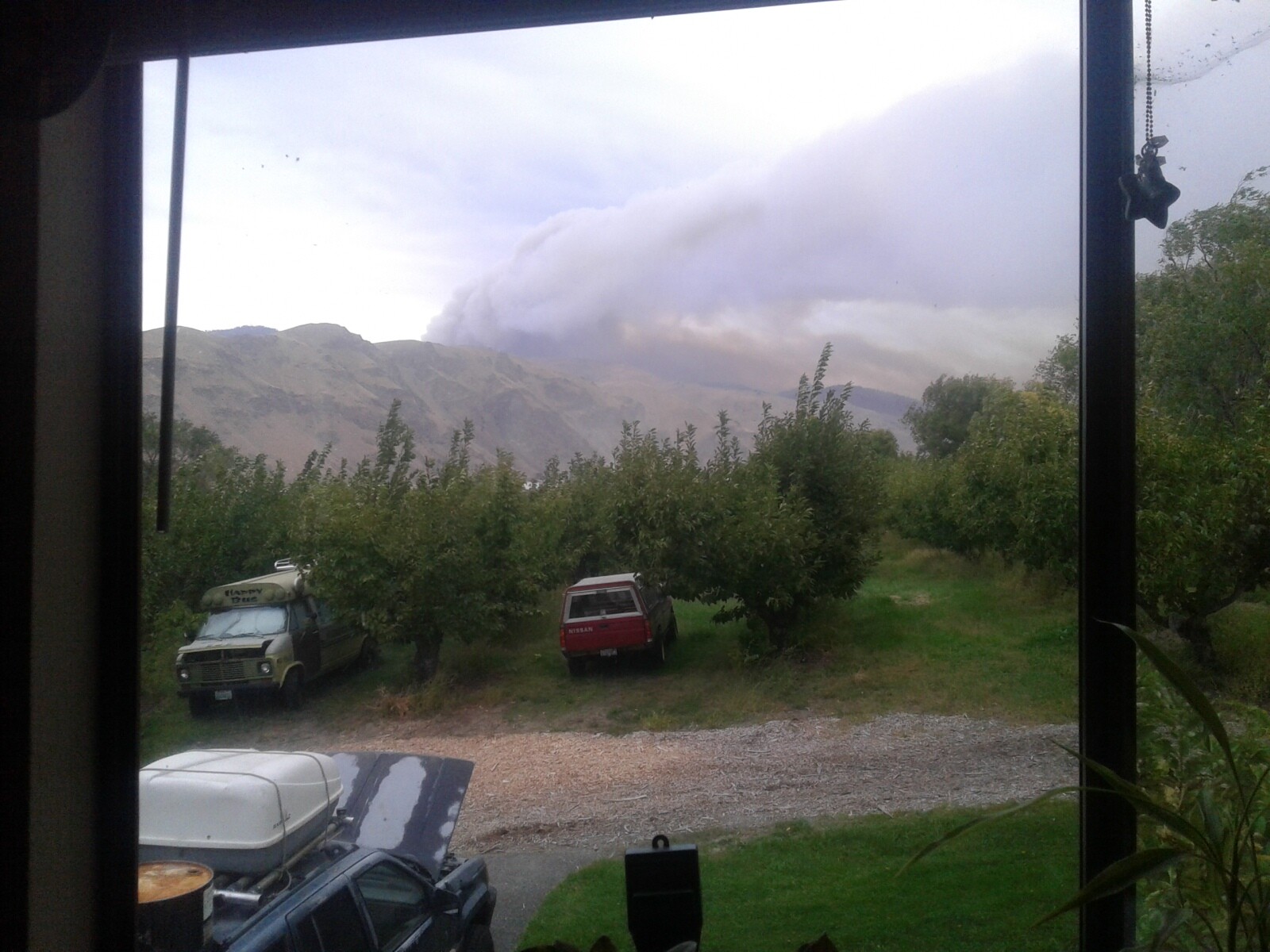 Prayers go out to you. I think that smoke looks pretty thick like it is going to jump across the mountain top. Unless there is some prep you can do to try and keep it from coming on your property, it is best to skedaddle.