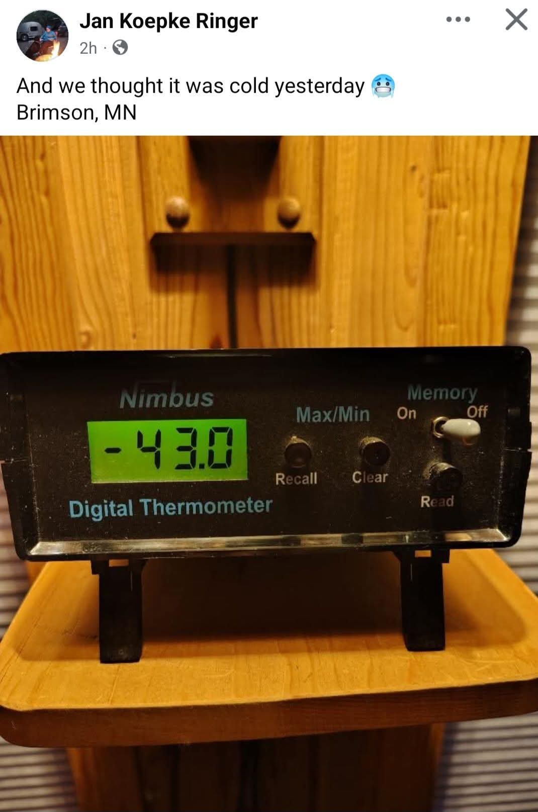 Wayne, you might want to go put your winter coat on before reading the rest of this post. Was 19 below zero F here last week with 40 below wind chill. 4 F right now but it is supposed to warm up to the 20s by next week. Still not as cold as I remember growing up in South Dakota.
