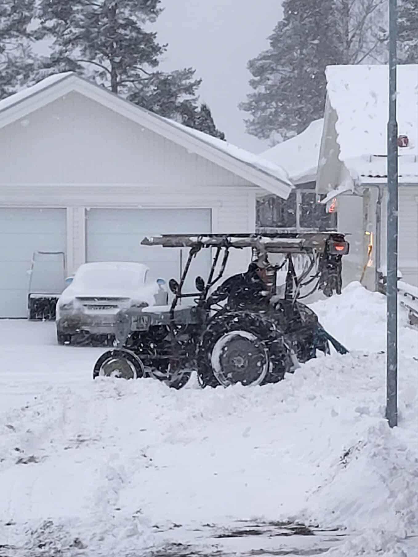 I have one more nightshift to go and I’m about to fire up the pickup under the carport. The Volvo is parked indoors and I won’t even try to free up the garage doors from the high drifts until tomorrow.