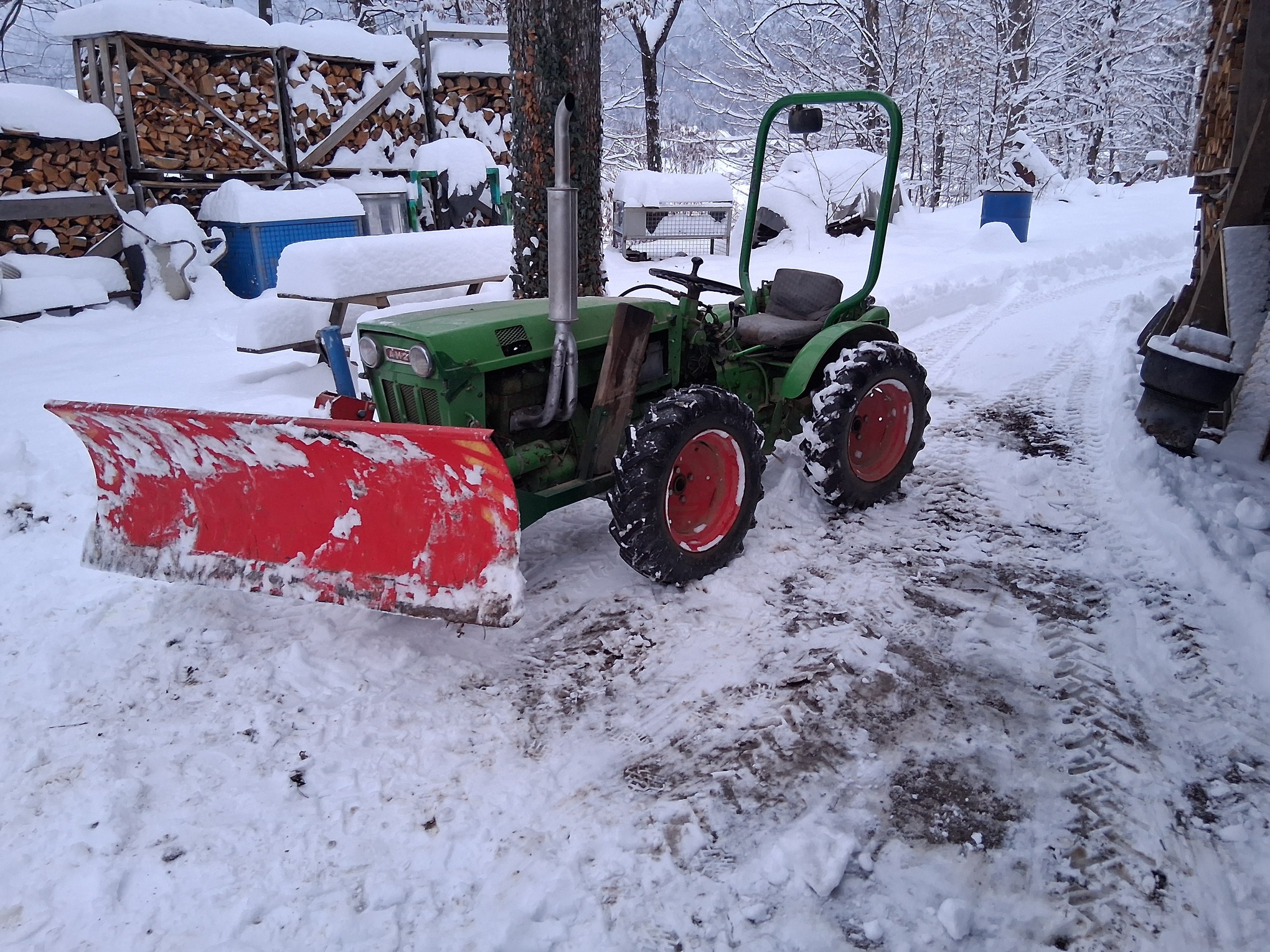 Vehicles are taking a rest too. Only the Volvo woodburner is parked indoors in the heated garage for emergency use. Days like these I’m greatful my woodheating system is good enough for 100% heating needs no matter temps.