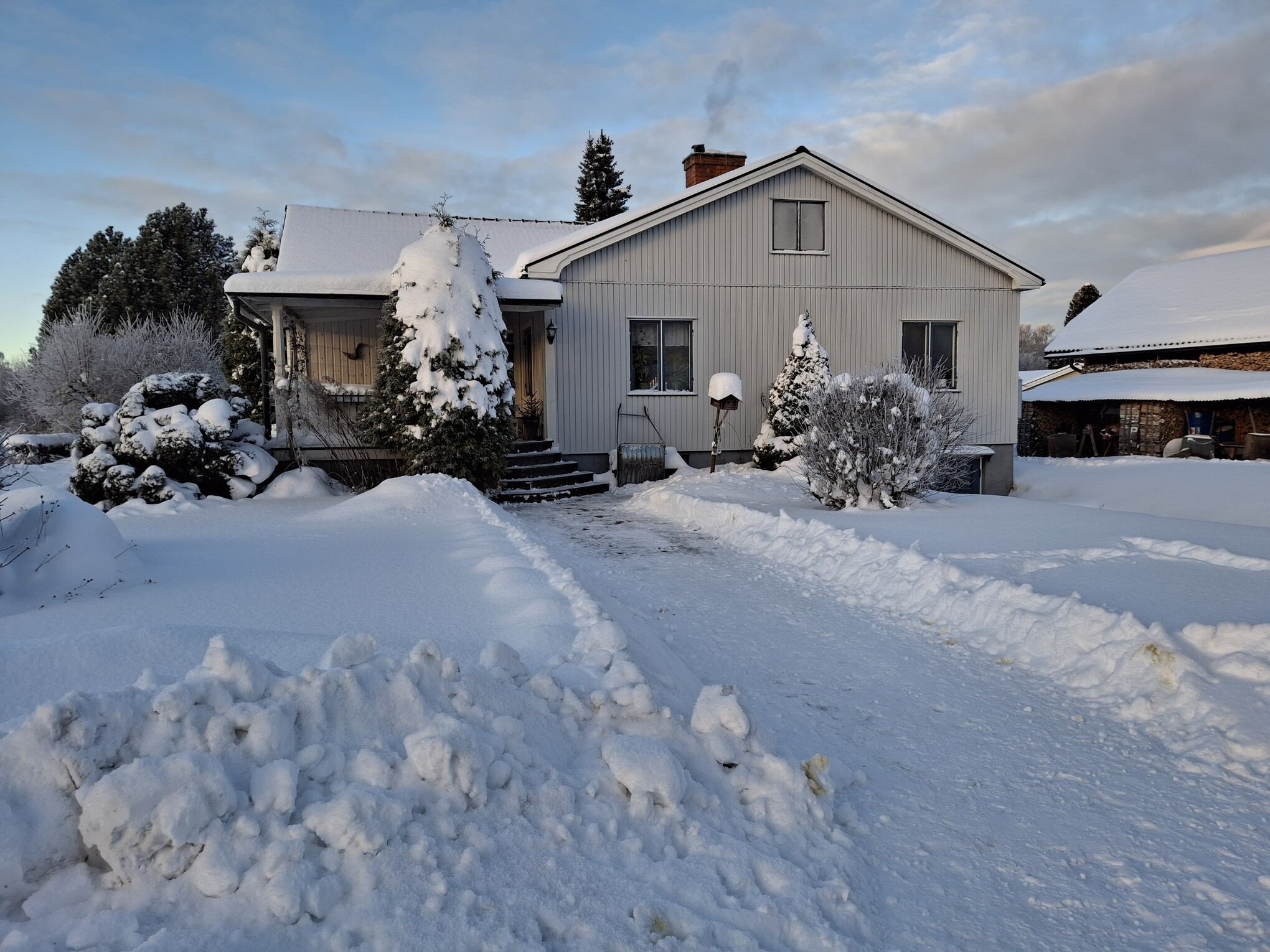 Worst storm in decades that knocked down a lot of timber followed by a snowstorm that kept snowclearing equipment busy for several days and now a couple calm but crisp days touching -24C (-11F) temps.