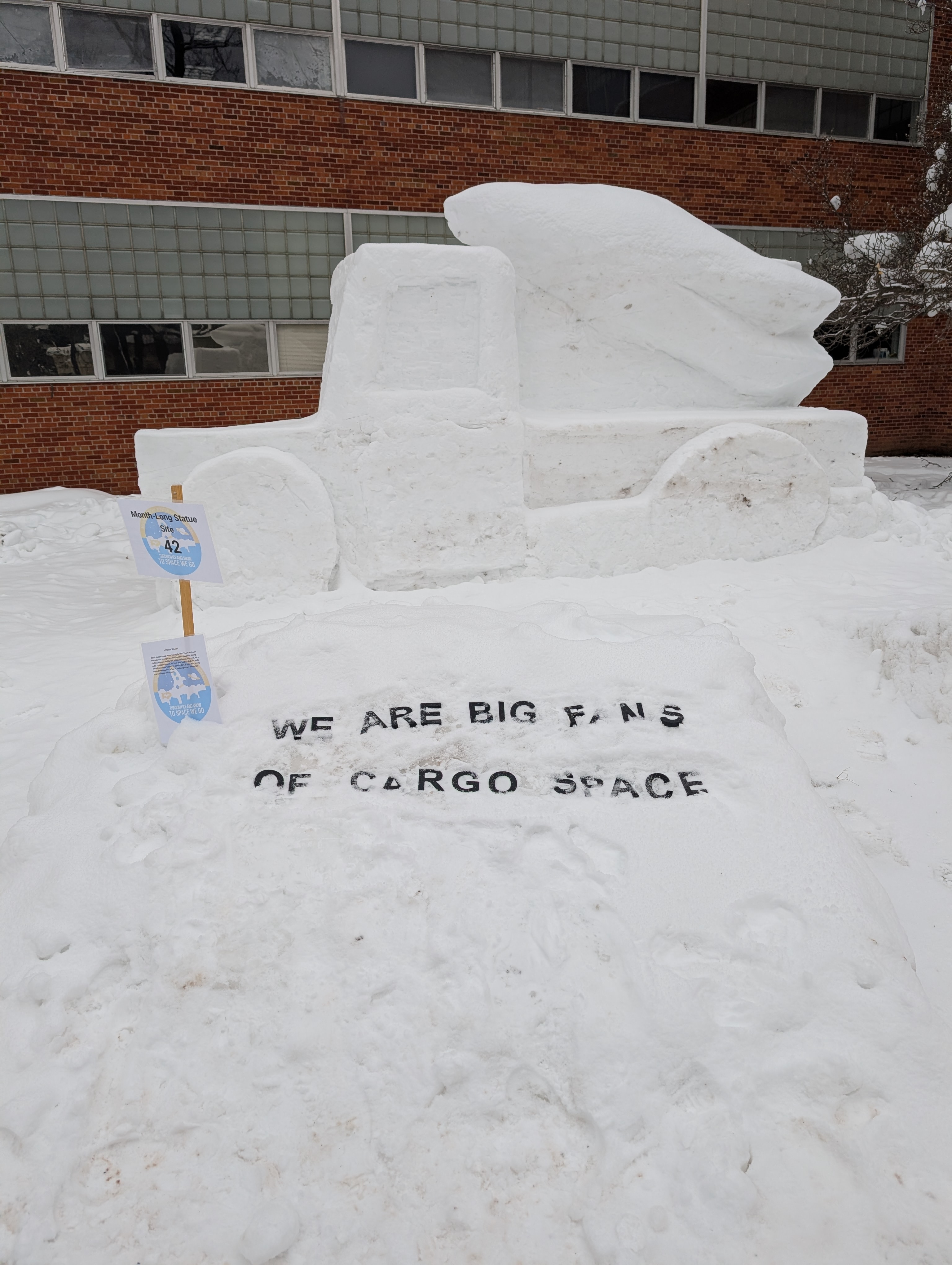 This was one of the snow statues. When I complained about it, my son remarked “Dad, it’s an engineering school, not an art school.”