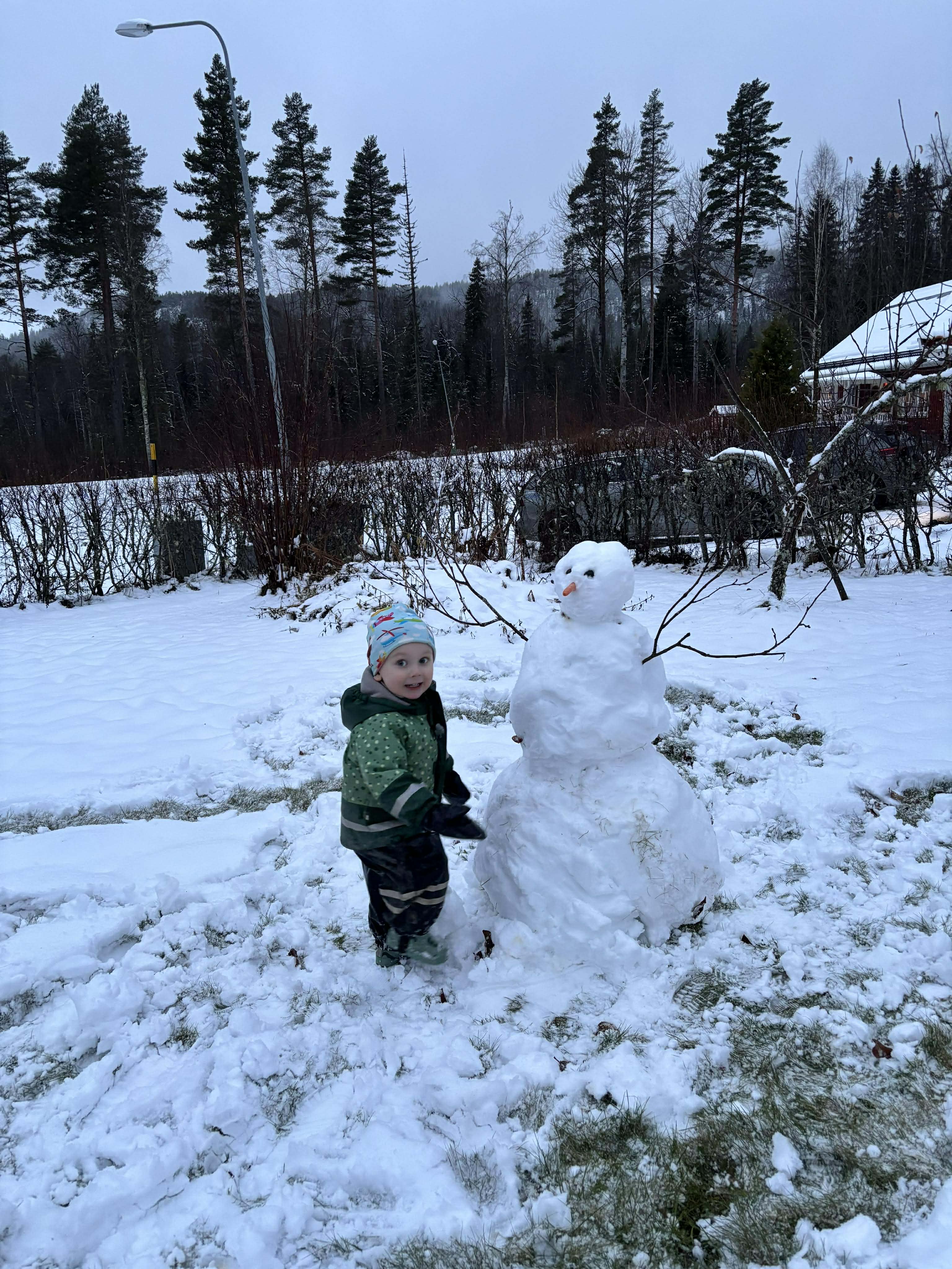 Helmer is making a snowman and Agnes is apparently in the woods hunting. Also, a few days ago one of our daughters reported sore arms after chopping a moose into pieces. I expect some trading offers in the near future.
