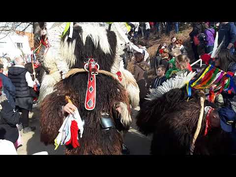 This is a traditional character called Kurent, it predates Christianity. You can see many different forms of characters, devils, wiches, angels… but the main is Kurent, the pegan God. They all have their simbolic meanings but the point of all this is only one. Make as much noise and apearance as possible to chase the winter away. The Kurent suit is made out of the fur of a special kind of sheep, with many simbolic acessorys like goose wings, boar tusks etc that all serve a simbolic purpose. Enormous cow bells around his belt is what makes the noise.