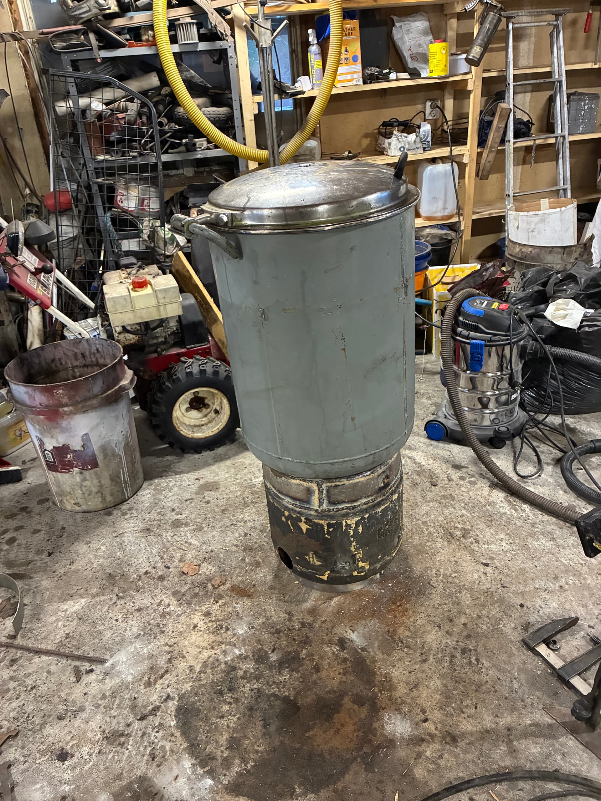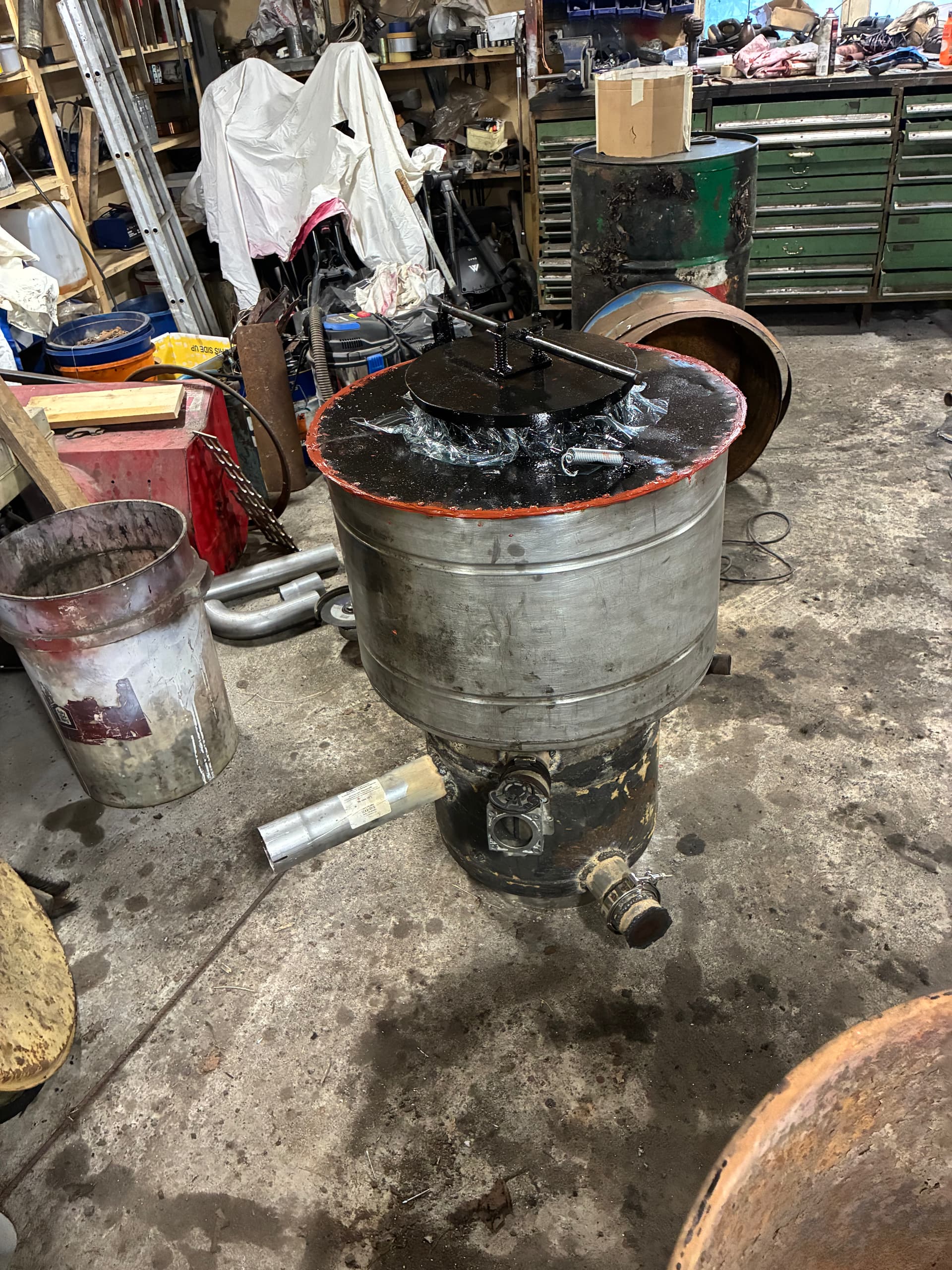 I did not know that about the hopper juice, JO. Living and learning. One way I made a filter container, Jan, was to take a metal garbage can. https://www.instacart.com/products/18857100-behrens-galvanized-steel-trash-can-with-lid-31-gal? and slit a length of air hose to fit over the edge of the container. I carefully hammered out the lid edge a little so it would fit over the hose. it sealed and worked for me. I added a couple of hoops inside the can to keep it from collapsing. You could do something similar with your container if you stitch welded a piece of banding around a flat lid and sealed the rest of the joint with HT silicone.