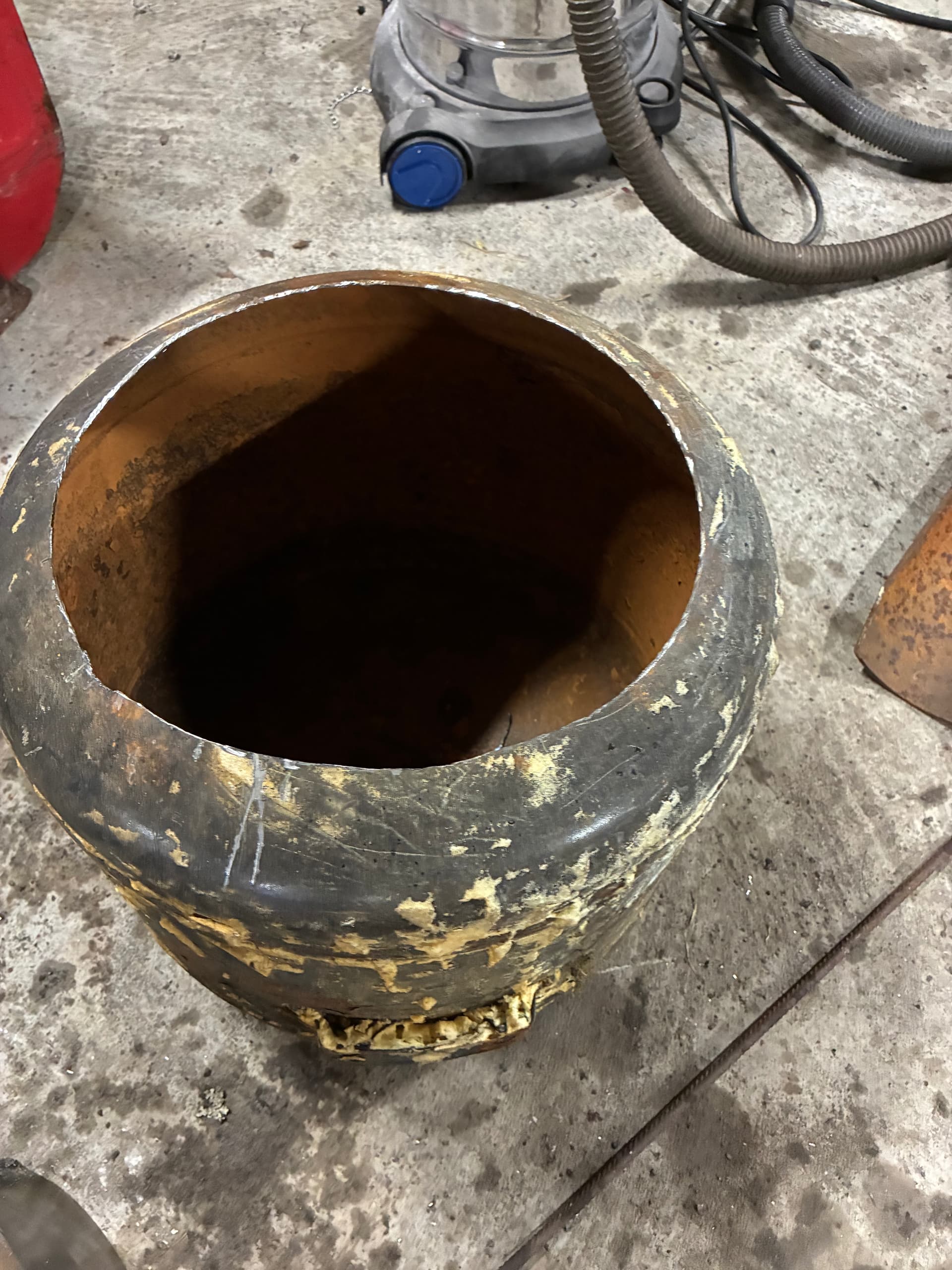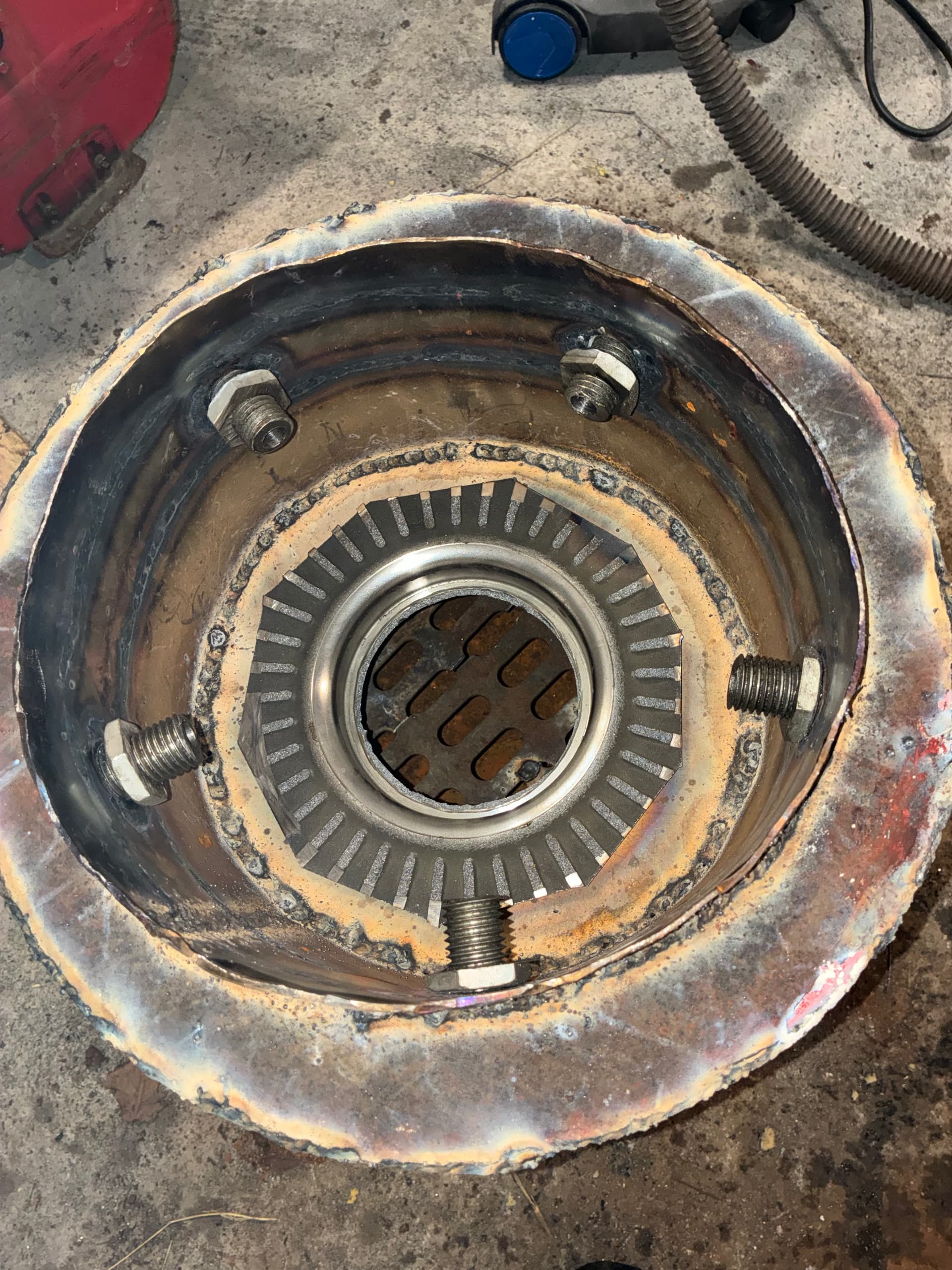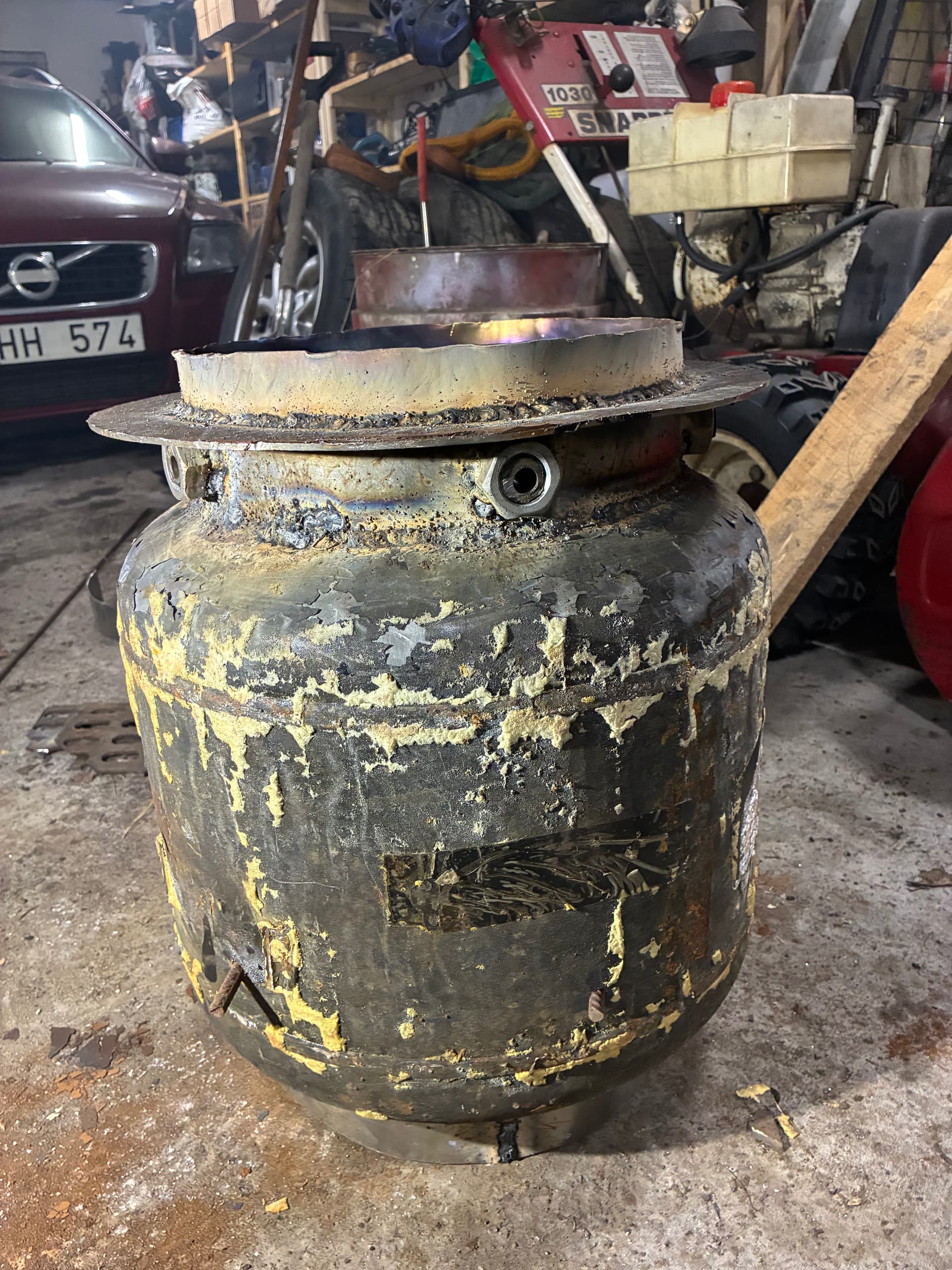 Almost done but as usual I made a mistake, when I welded the edge to the lid I welded all the way, thinking that the thin plate can’t bend that much, well it could.