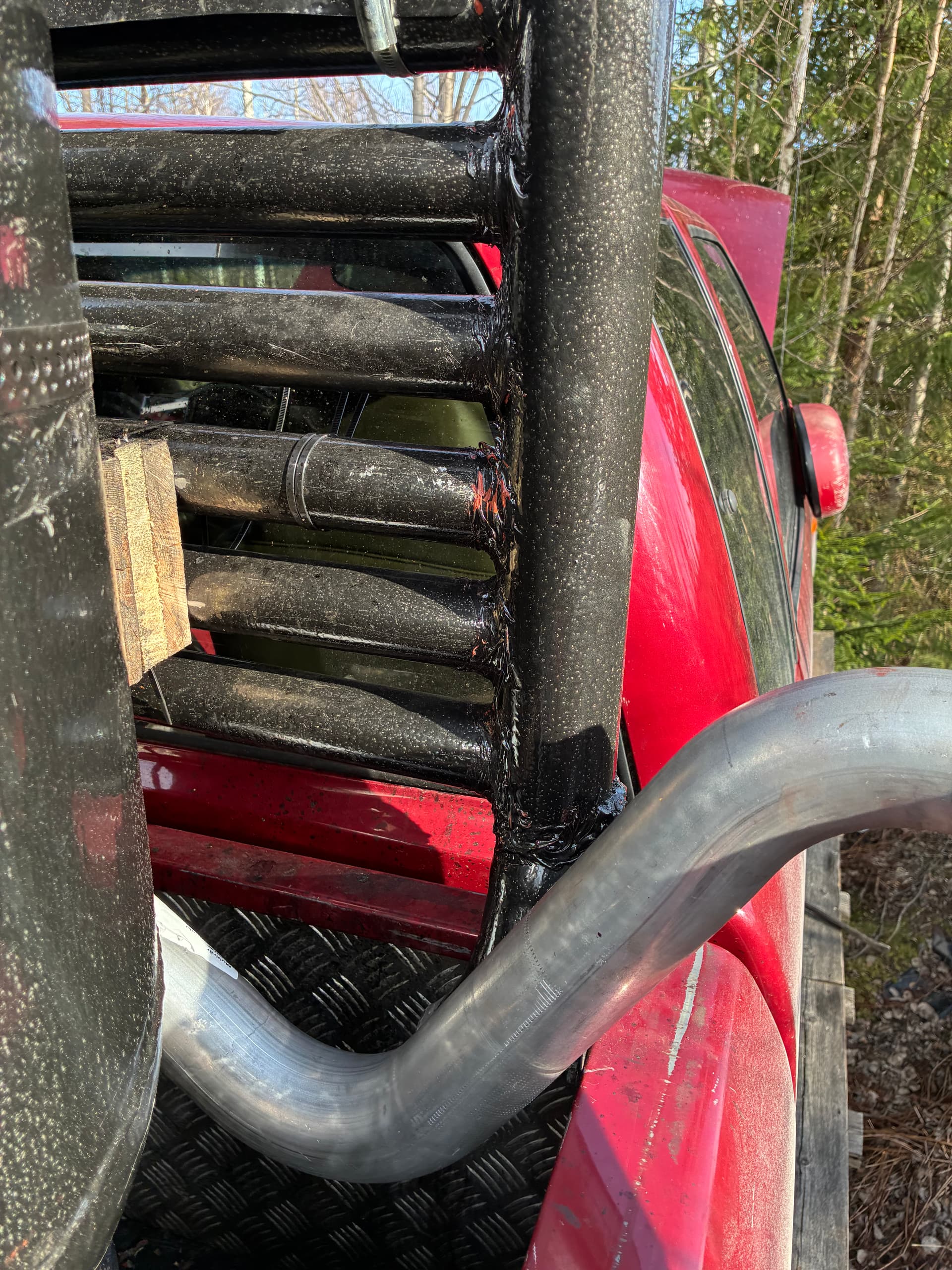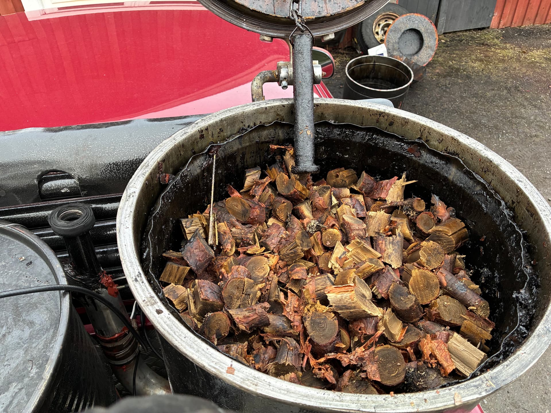 This is what the wood looks like when I start in the morning, completely dry, I have some thoughts, now the car runs quite well, but I think it is a little weaker than the old one, I only have a 48mm pipe on this one, I wonder if it is too small?