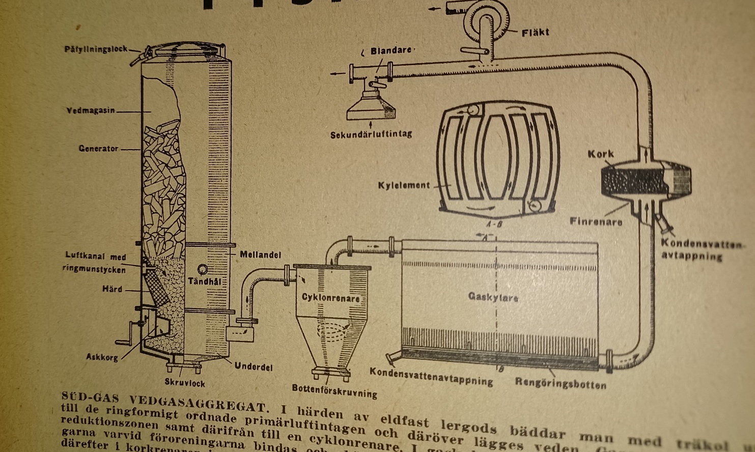 Charcoal gasifier from “Bruzaholms bruk” a foundry known for making hydraulic ram pumps, whereof one is placed in a museum, known to have operated unattended for 70 years.