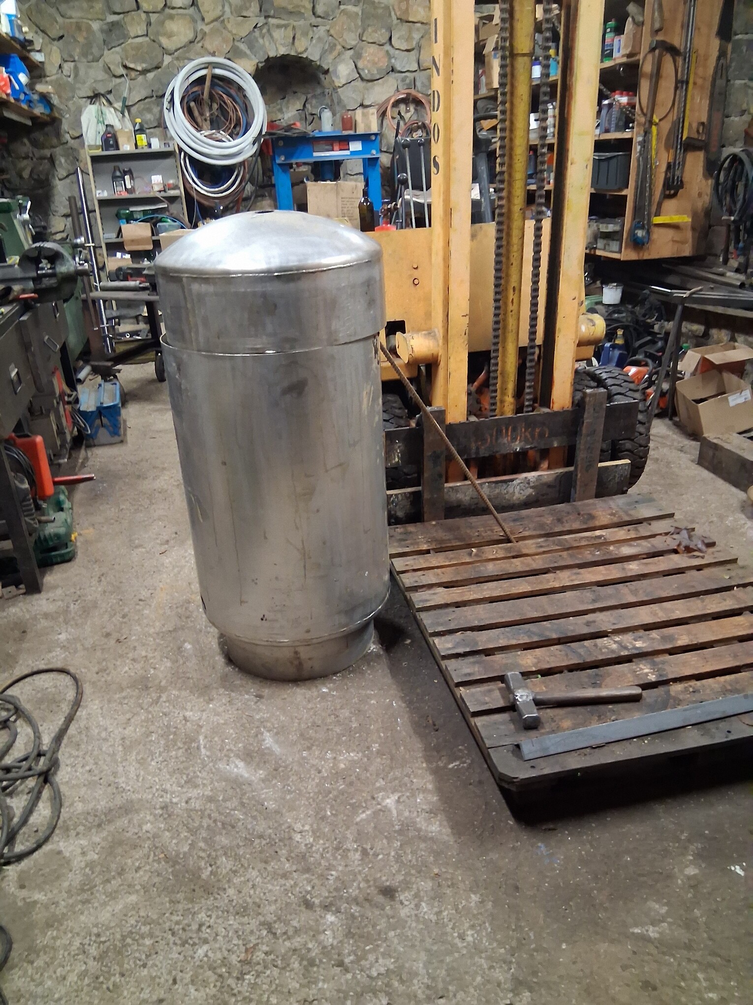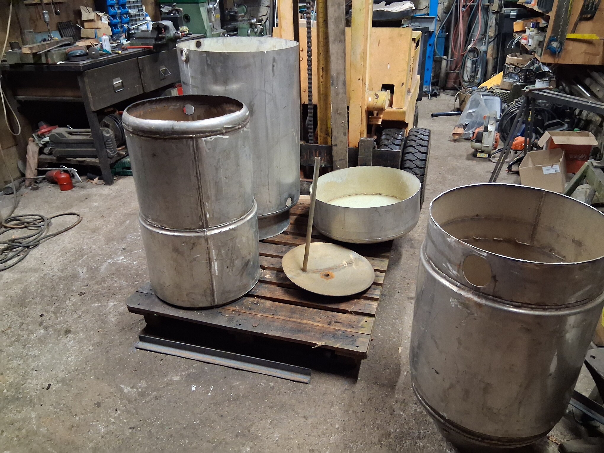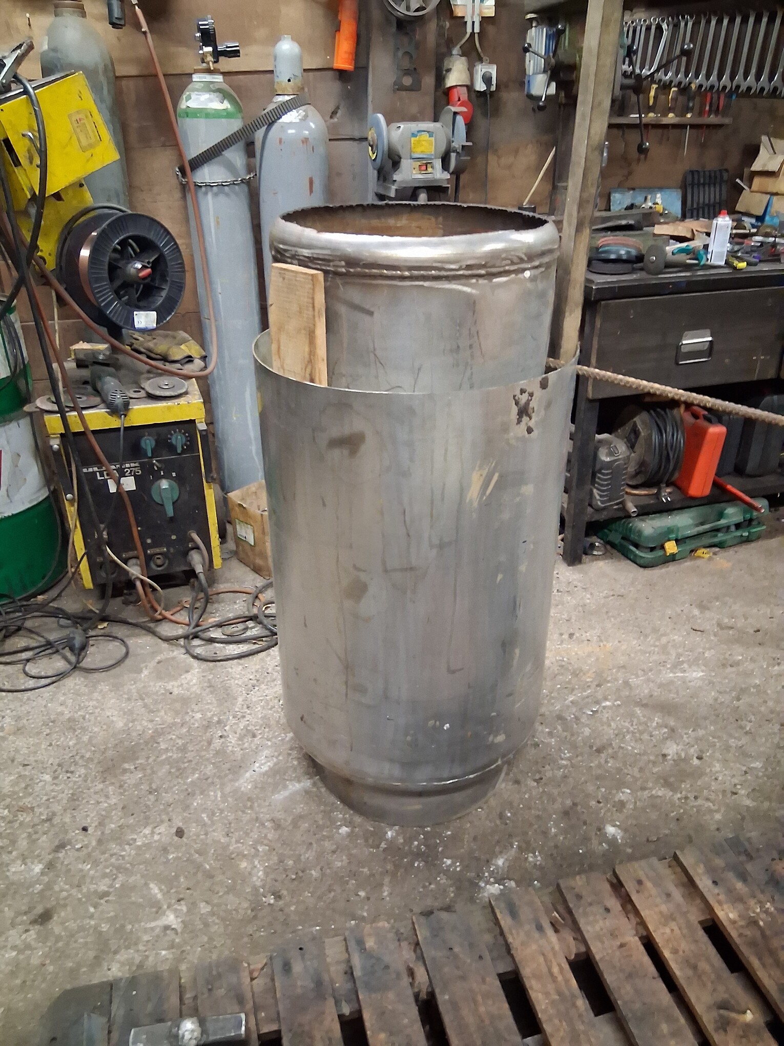The diameter of the inner container is 50 cm, and the outer one is 60 cm, the total height will be approximately 130 cm, the fuel capacity will be approximately 170 liters,… to be continued