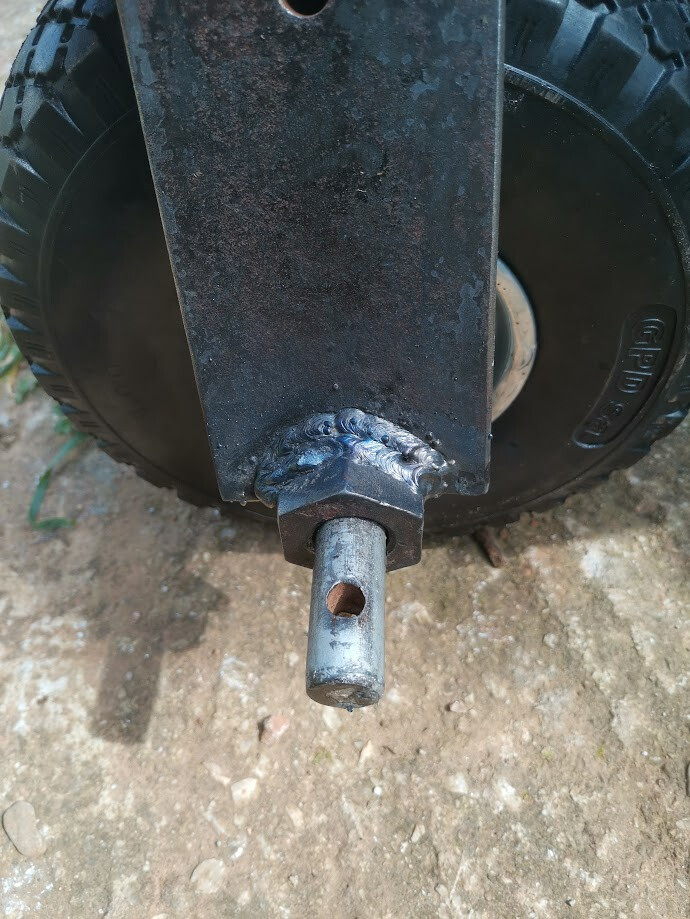 The ‘hubs’ for the axle were some old, imperial nuts I found lying around. Everything is metric here so I was never gonna use them. This should be plenty sturdy I imagine. They are about an inch thick, maybe more.