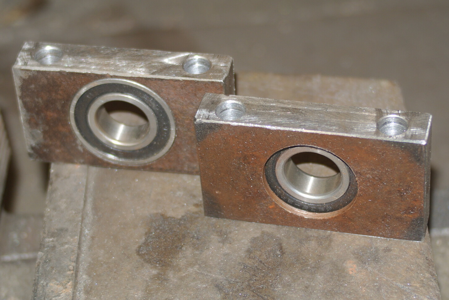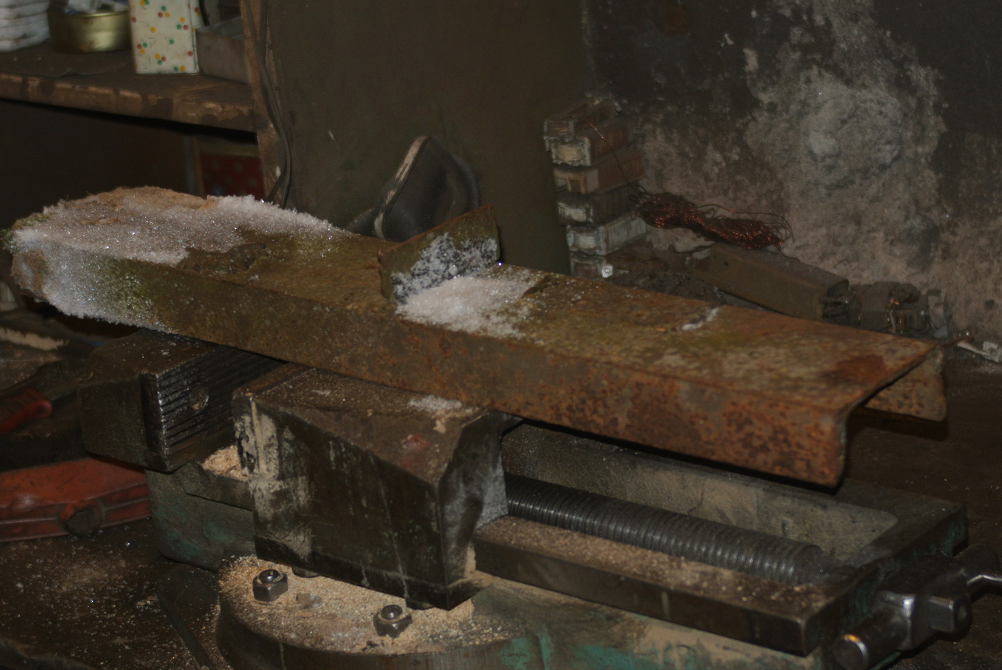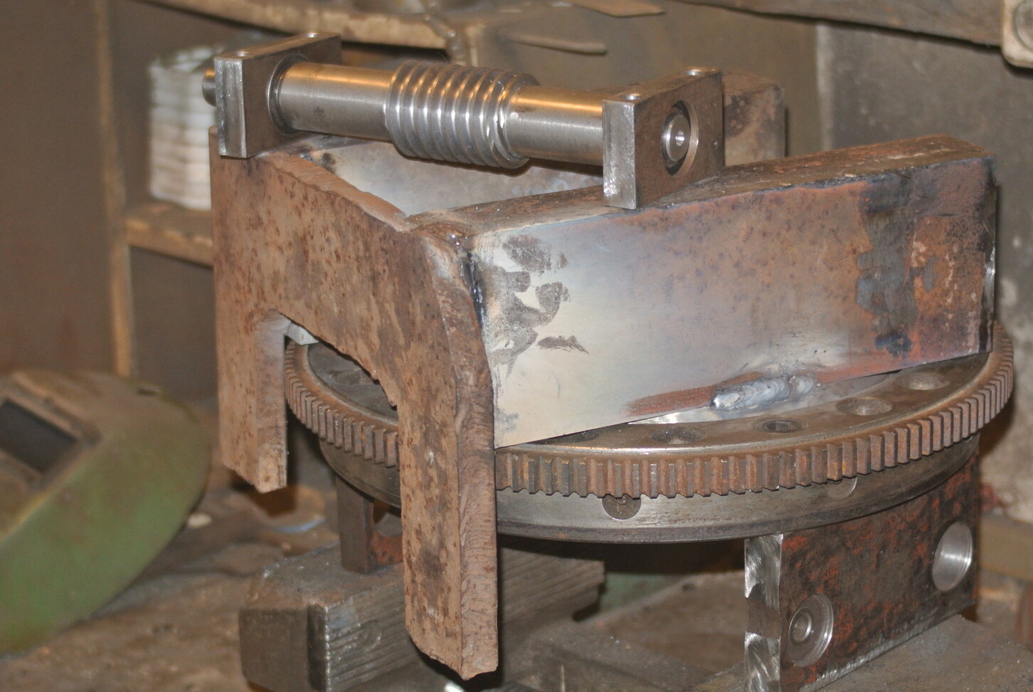 meanwhile i will work on bottom side - must make something that would connect bearing to the pole and hold the worm shaft. cut two plates and now i have to dig some metal, preferably a couple pieces of U profile from under the snow. ))