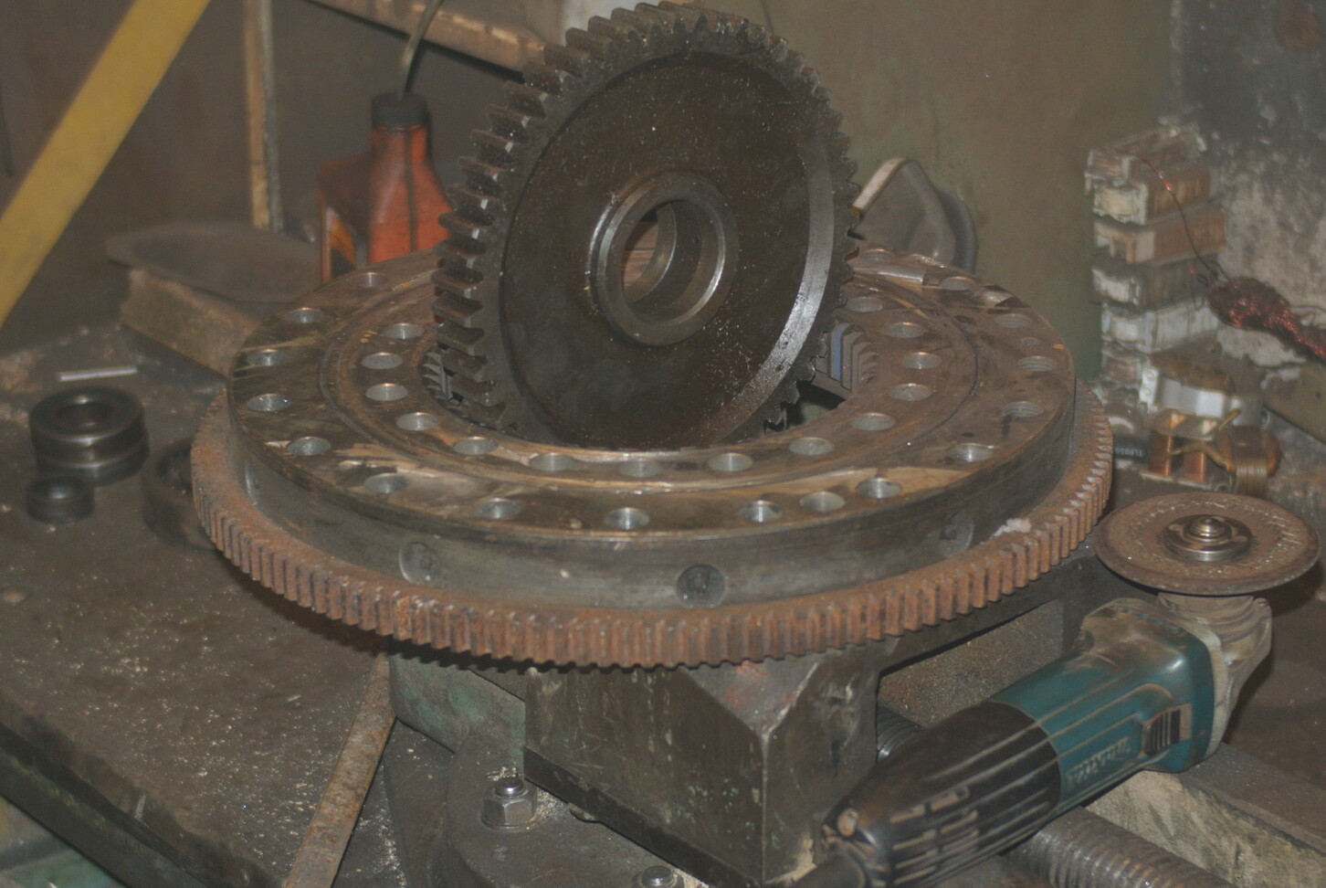 car flywheel works fine for altitude adjustment, but it has rather narrow and fine teeth, i will try some big gear instead of flywheel for more contact surface and because i do not have any flywheel at hand. ))
