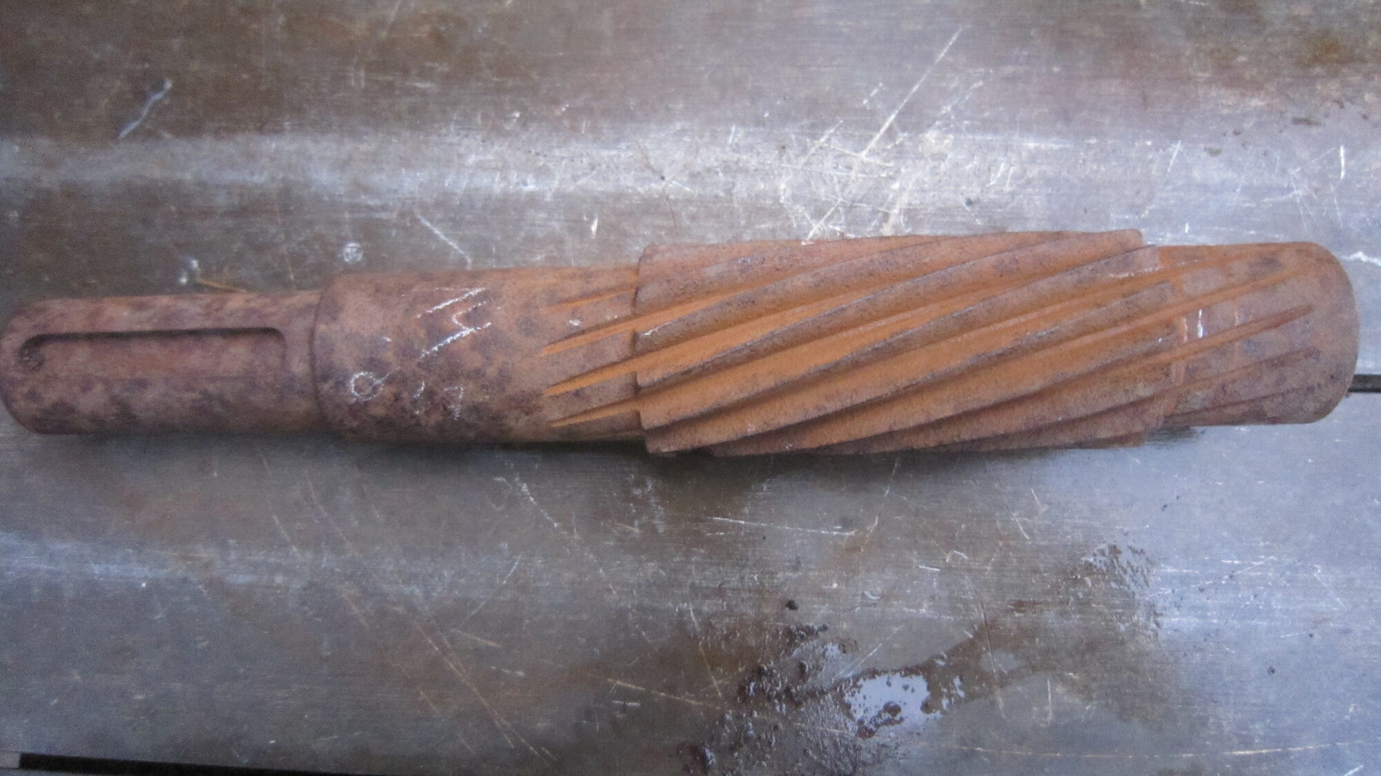 i found some pieces like that in our scrap pile…it is a piece from a gear and hardened…i think those pieces are generally hardened on the outer surface ind inside they are more soft for avoid breaking …i must cut with the angle grinder pieces large 1cm from the part with the grove…(for crop transport)