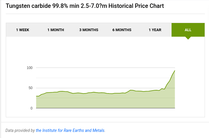 Apparently you will need to order them from the US, the Chinese market doubled around July which is about when Trump put his tariffs in. I don’t think demand created a 100% jump in price for carbide over 6 months. This is FOB from China.