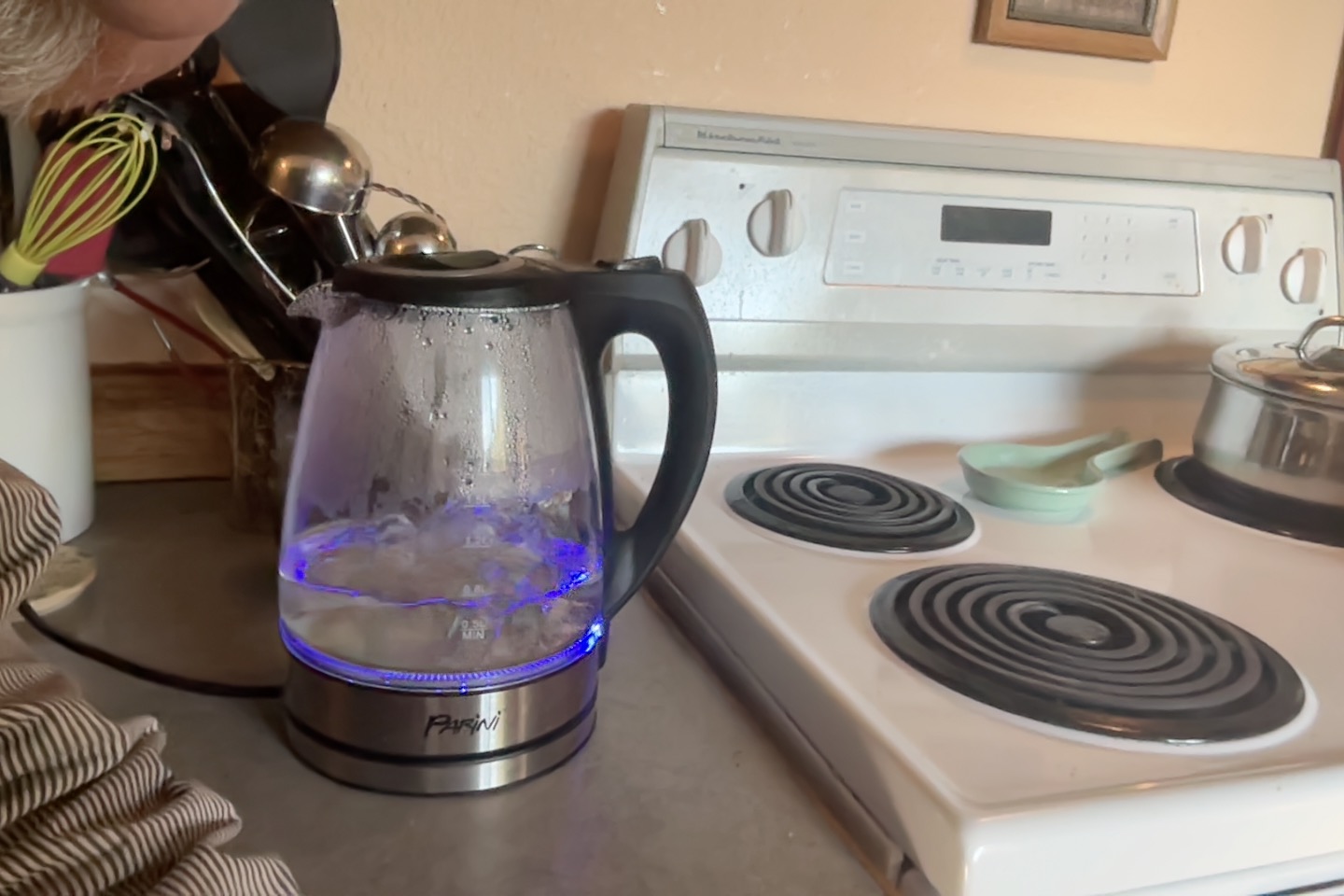 So I bought both a wall electric plug-in quick water heating kettle. No more tea kettle on a 240VAC, 3000 watt stove top burner.
