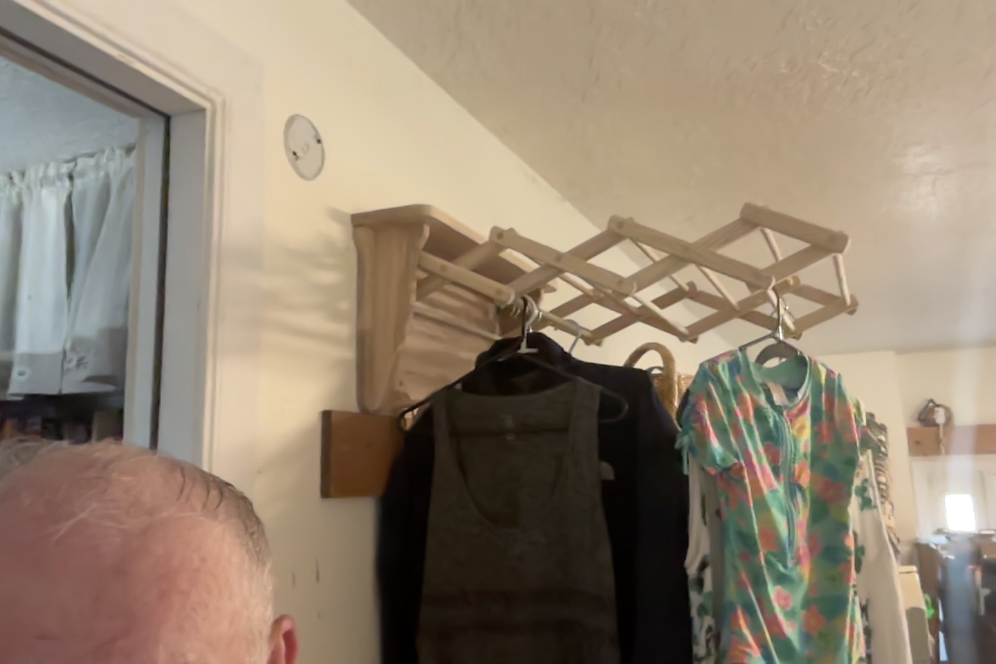 The wife acquired a small wall mounted cloths handing dryer rack; insisted I mount up for her.
