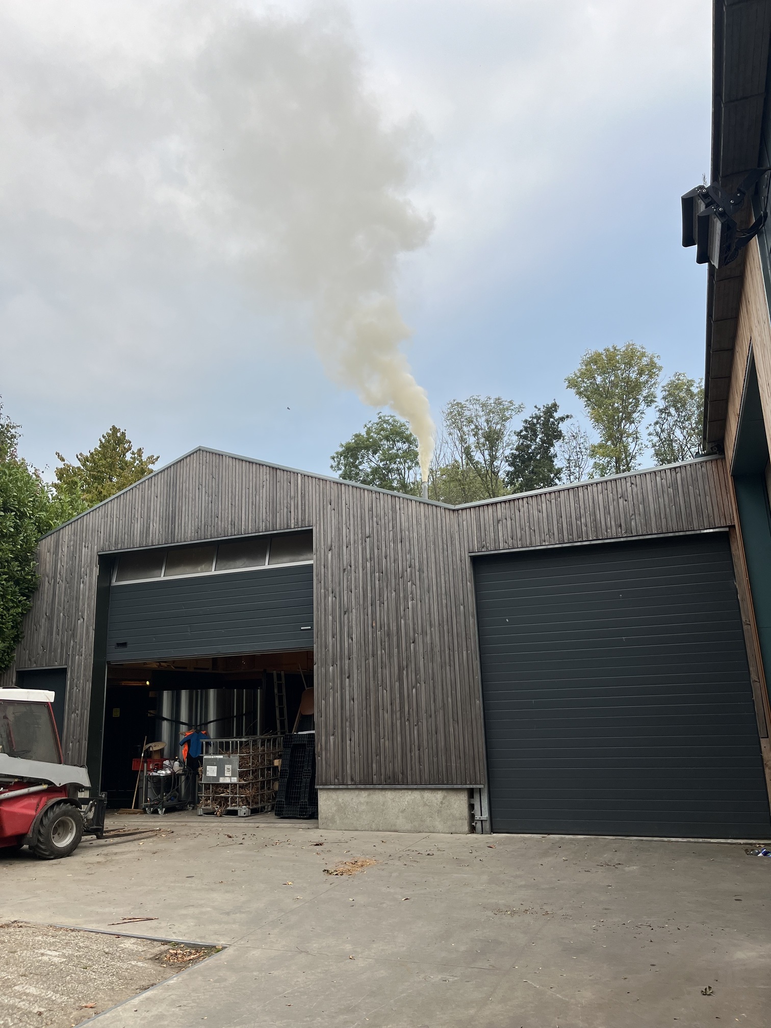 Here trying the new boiler. Better have the pipe connected to a generator. Thick yellow smoke. I dont dare to light it, rocked effect.