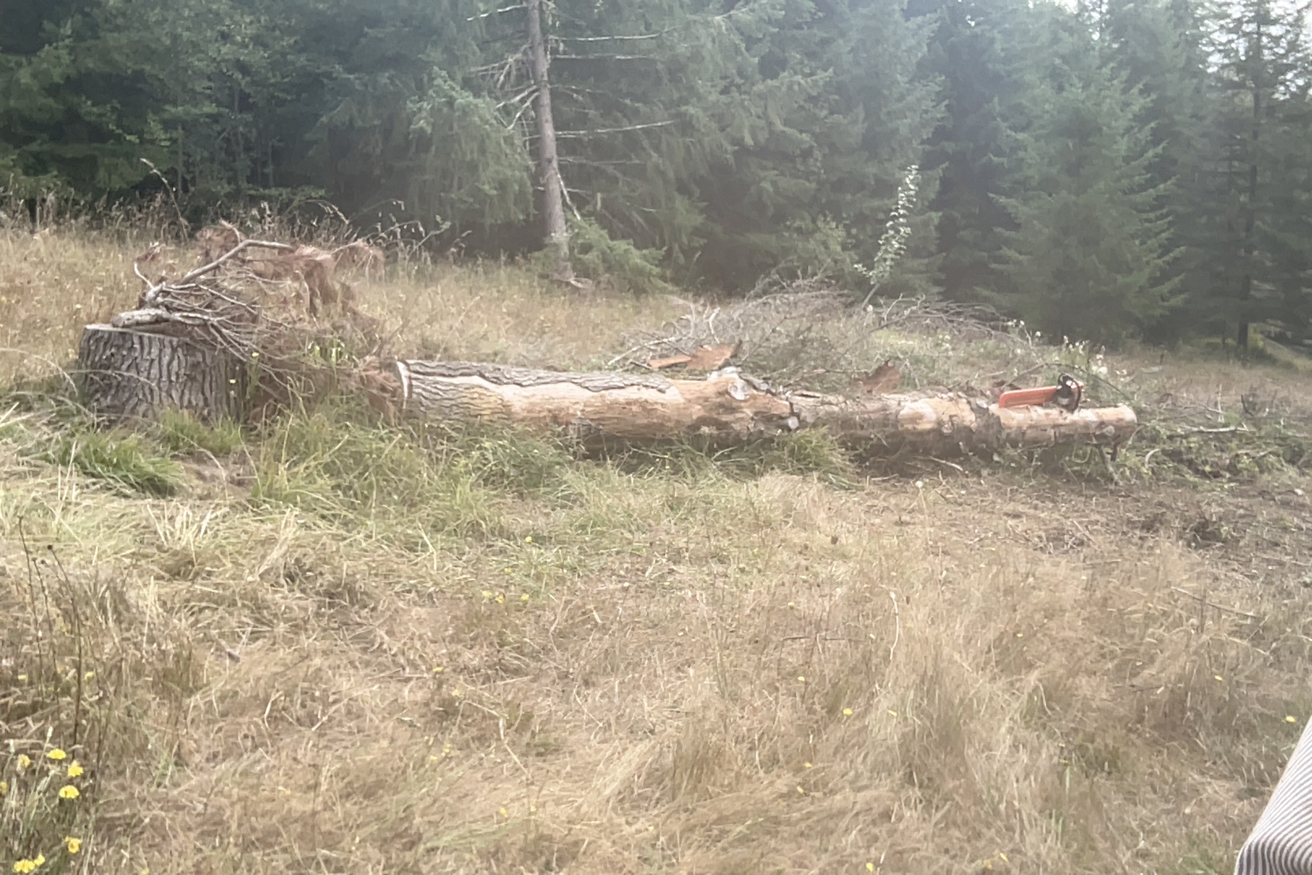 Plus the only way to safely get to this old overgrown limby Christmas tree’s trunk for sectioning, is to clear on side: