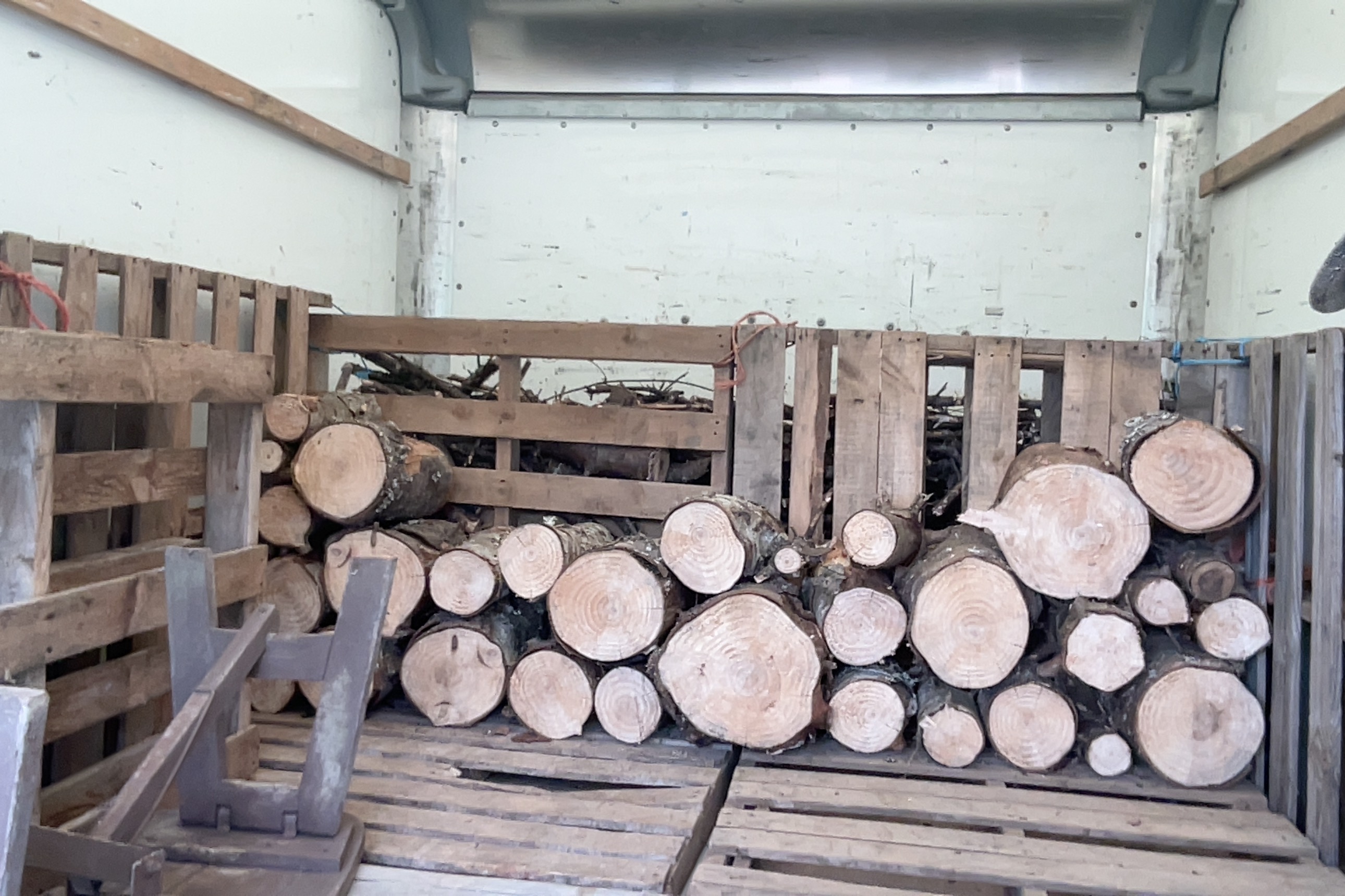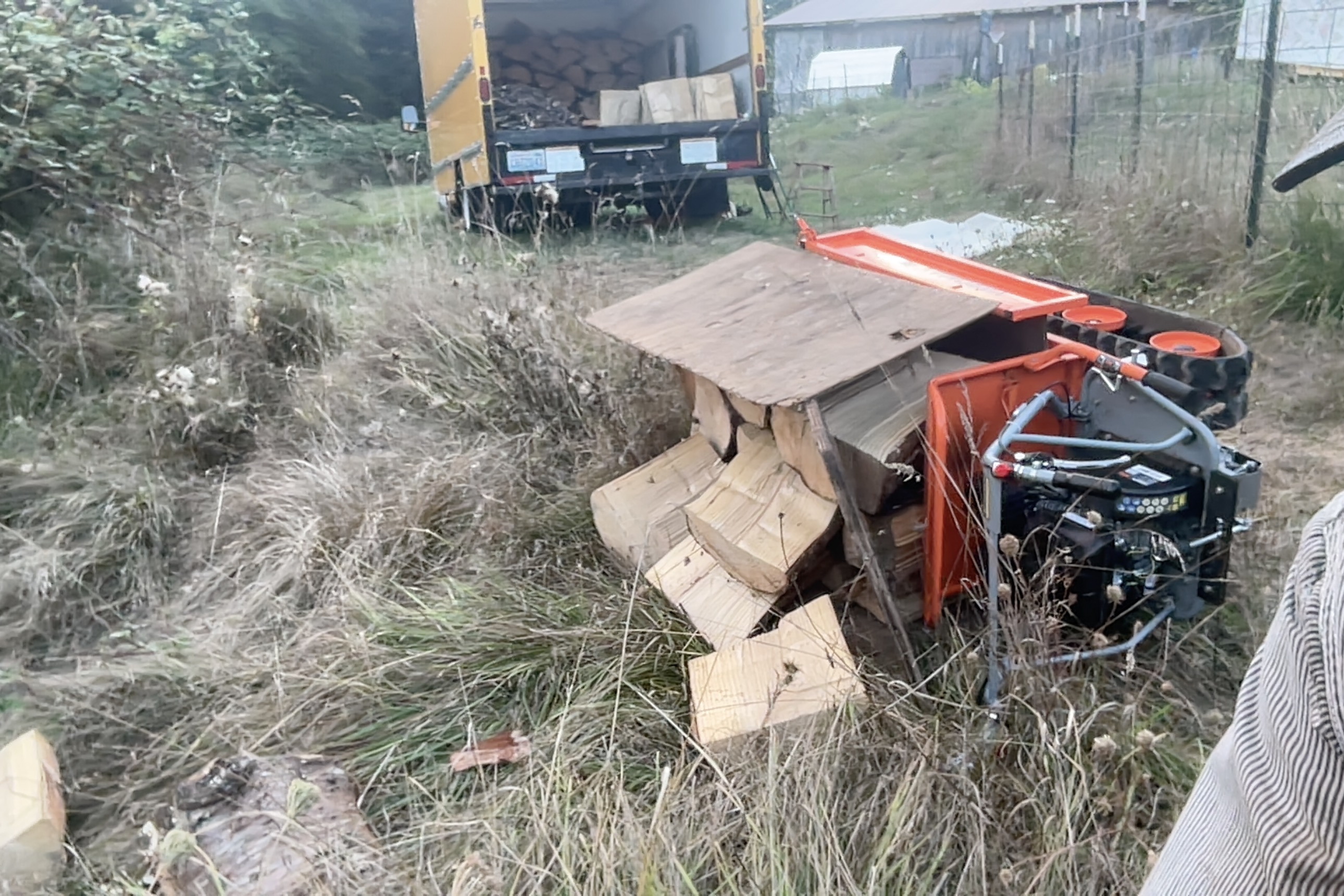 Close to the box van. So hand carry the half-rounds pieces. Tipped her back over.