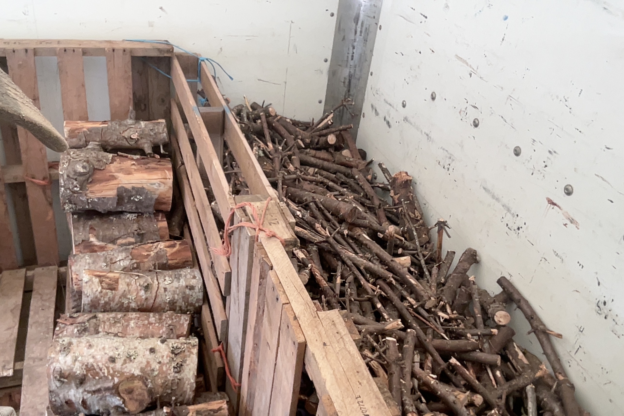The stack around the corner is horribly heavy wet 50%+ wood. That stack gets heated air flow in all nights from the high wall mounted mini-split heat pump.