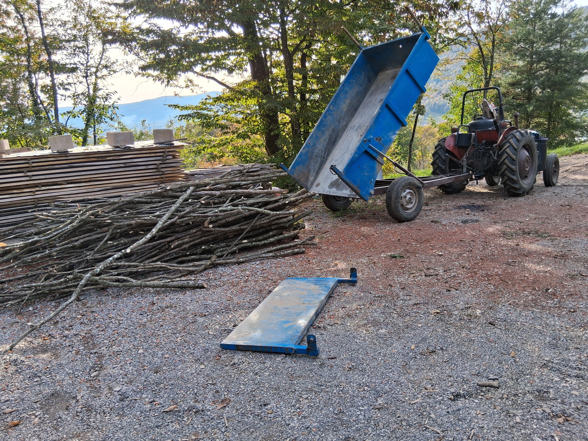 My friend Damjan asked me to clean up the branches of the trees he recently cut down, today I brought the first load. It is a hornbeam tree species, which in my opinion is the best wood for motor fuel.