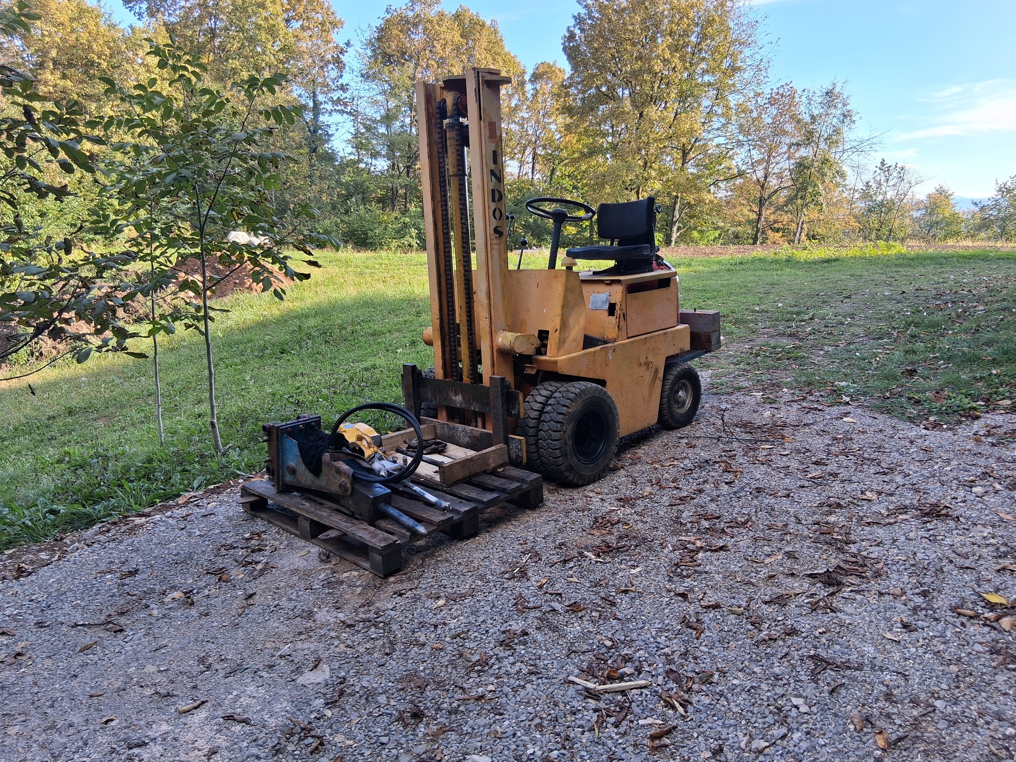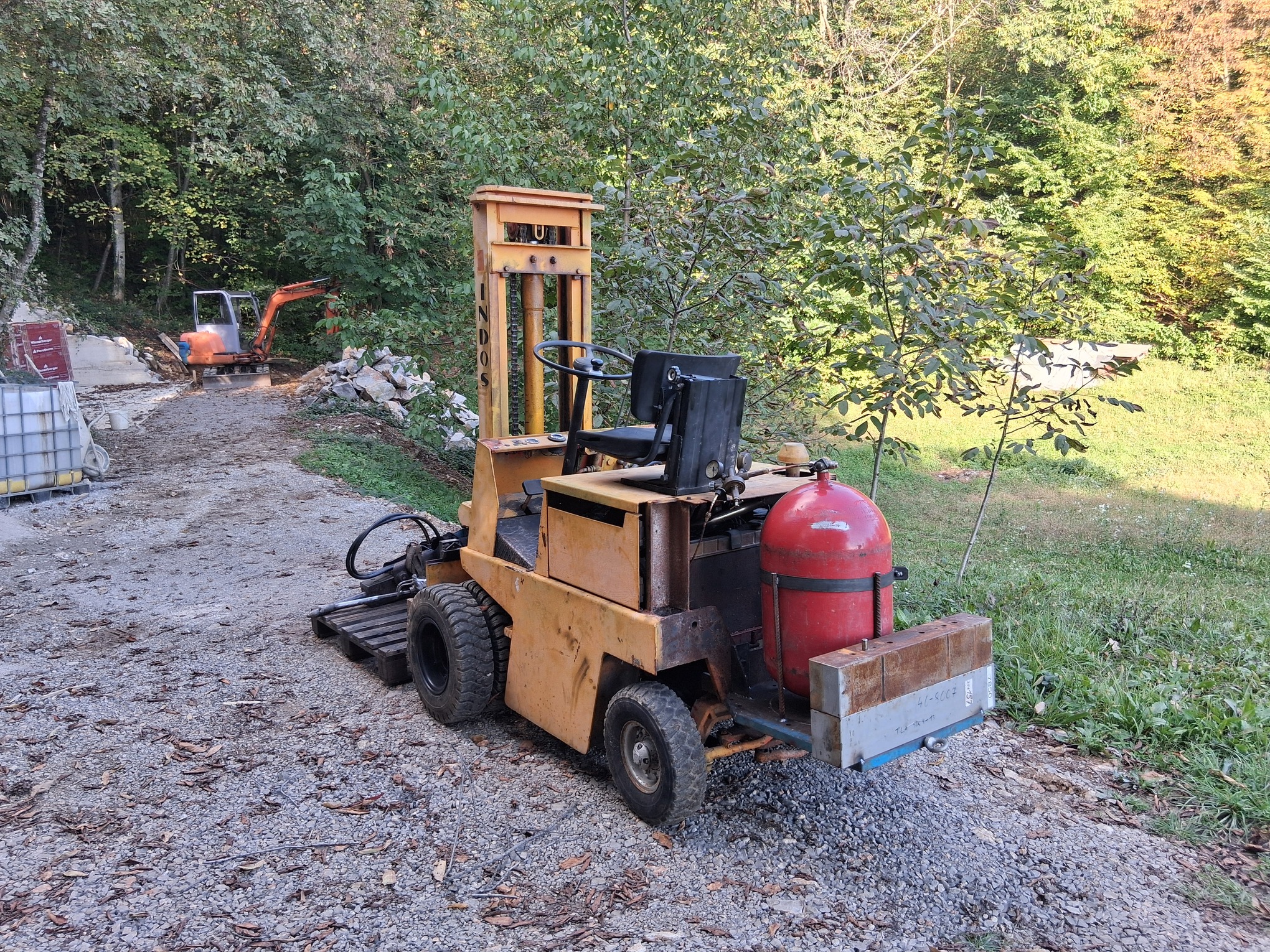This forklift followed me home about a year and a half ago, now I found some time to get it running. The year of manufacture is 1979, it has a manual transmission, the engine is a Yugoslav copy of the Fiat 1500. I added some weights to the back, because the original weight is much too heavy for driving on the steep terrain we have here, well, for now I installed a large heavy cylinder that I got from a scrapyard. The cylinder was intended for storing compressed natural gas - methane, it still has about 8 kg of gas under a pressure of 10 bar, I plan to use that first,…