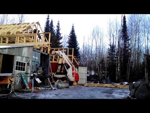 Most of the framing is done. My son and friend came up here today to give me a hand. I’m very grateful because those headers we’re damn heavy. I just need to put up the laterals on one side and then I can do tin.