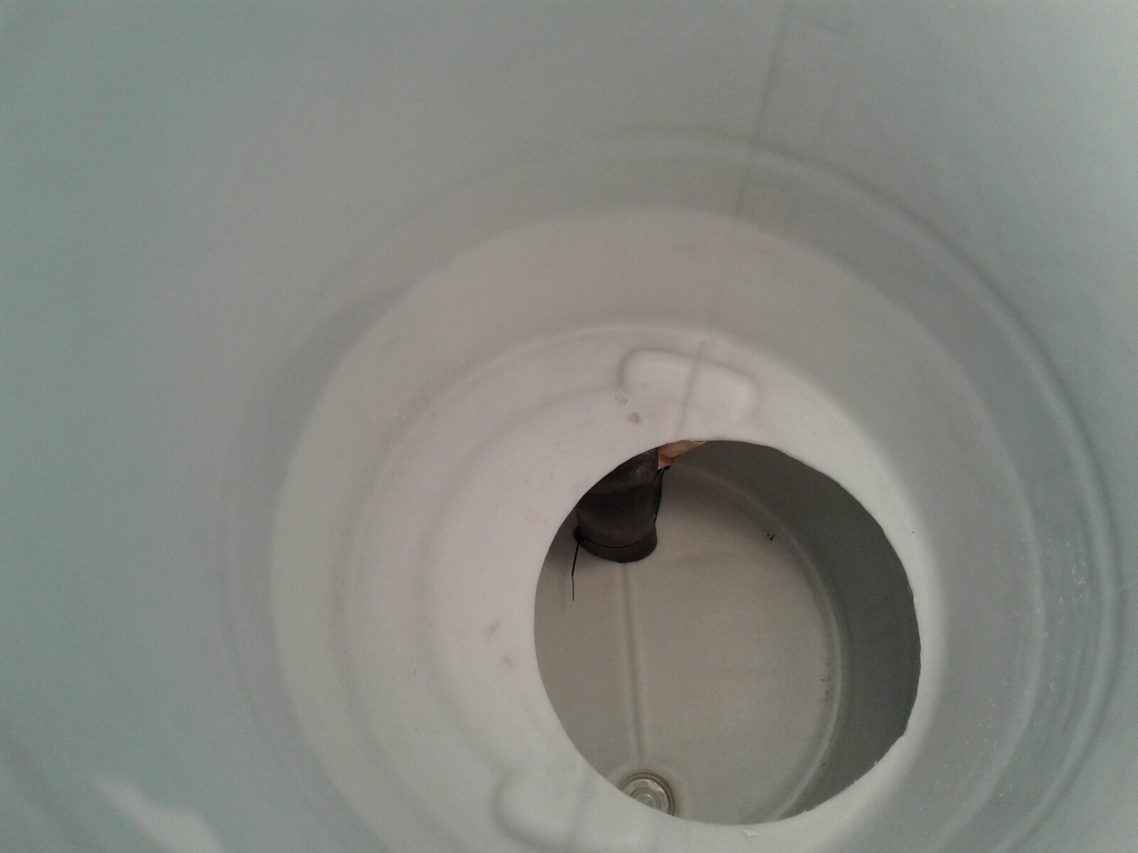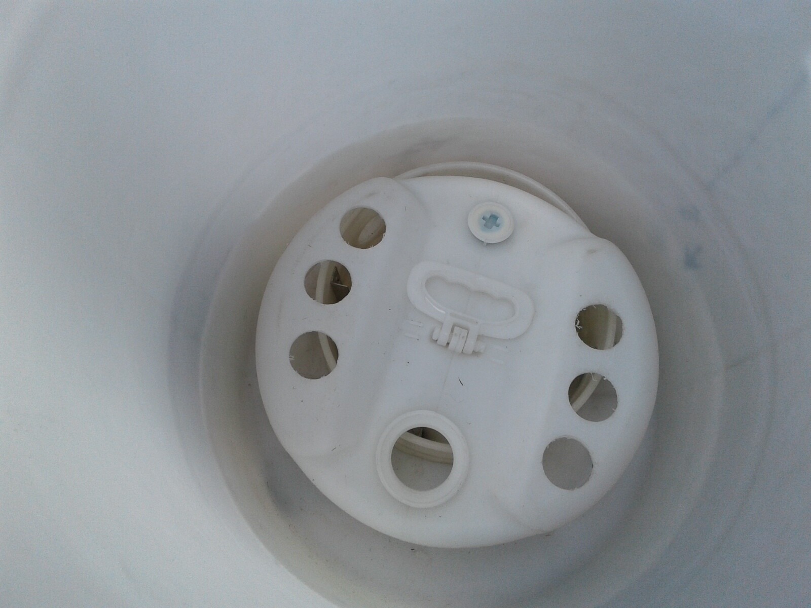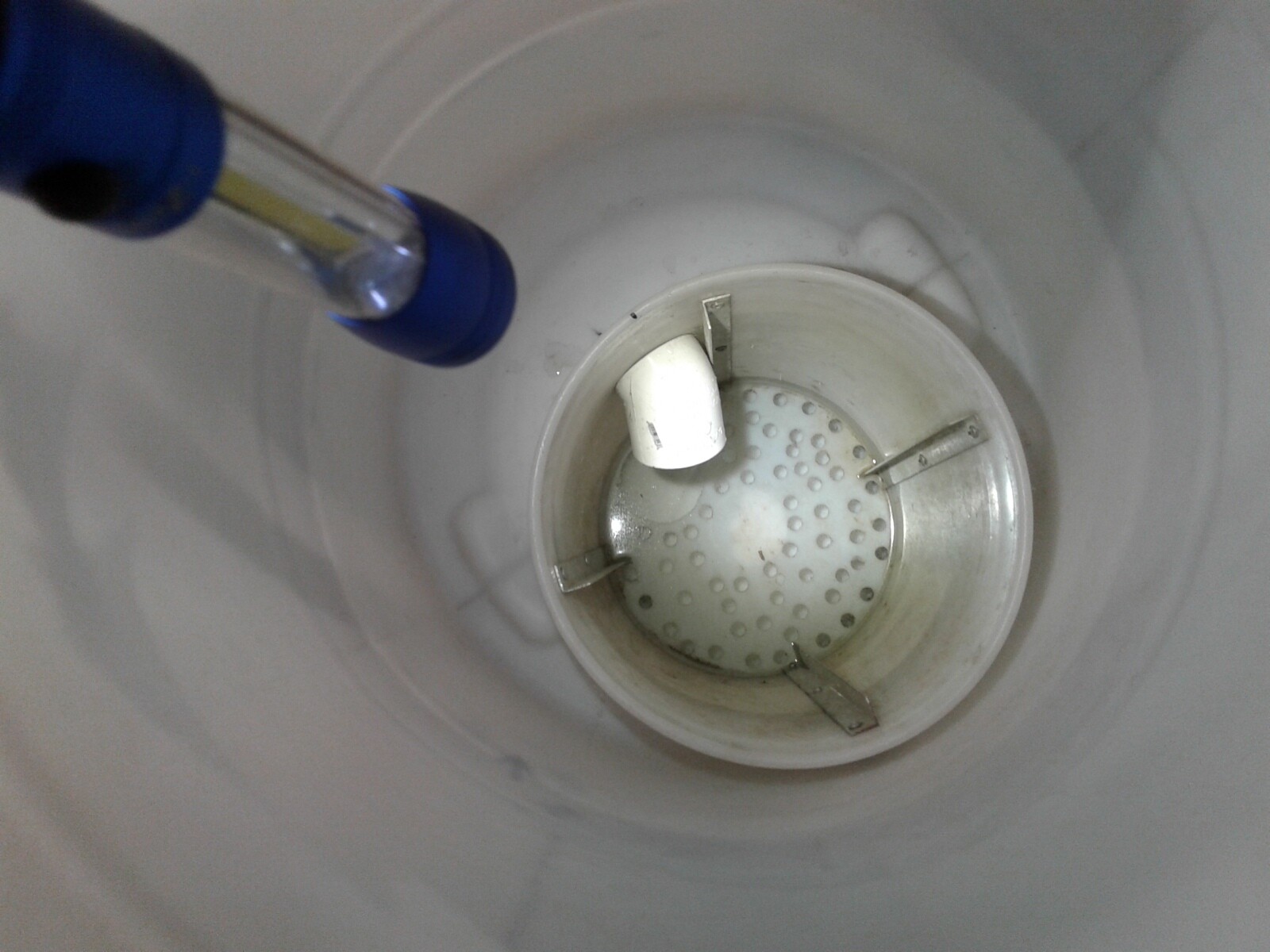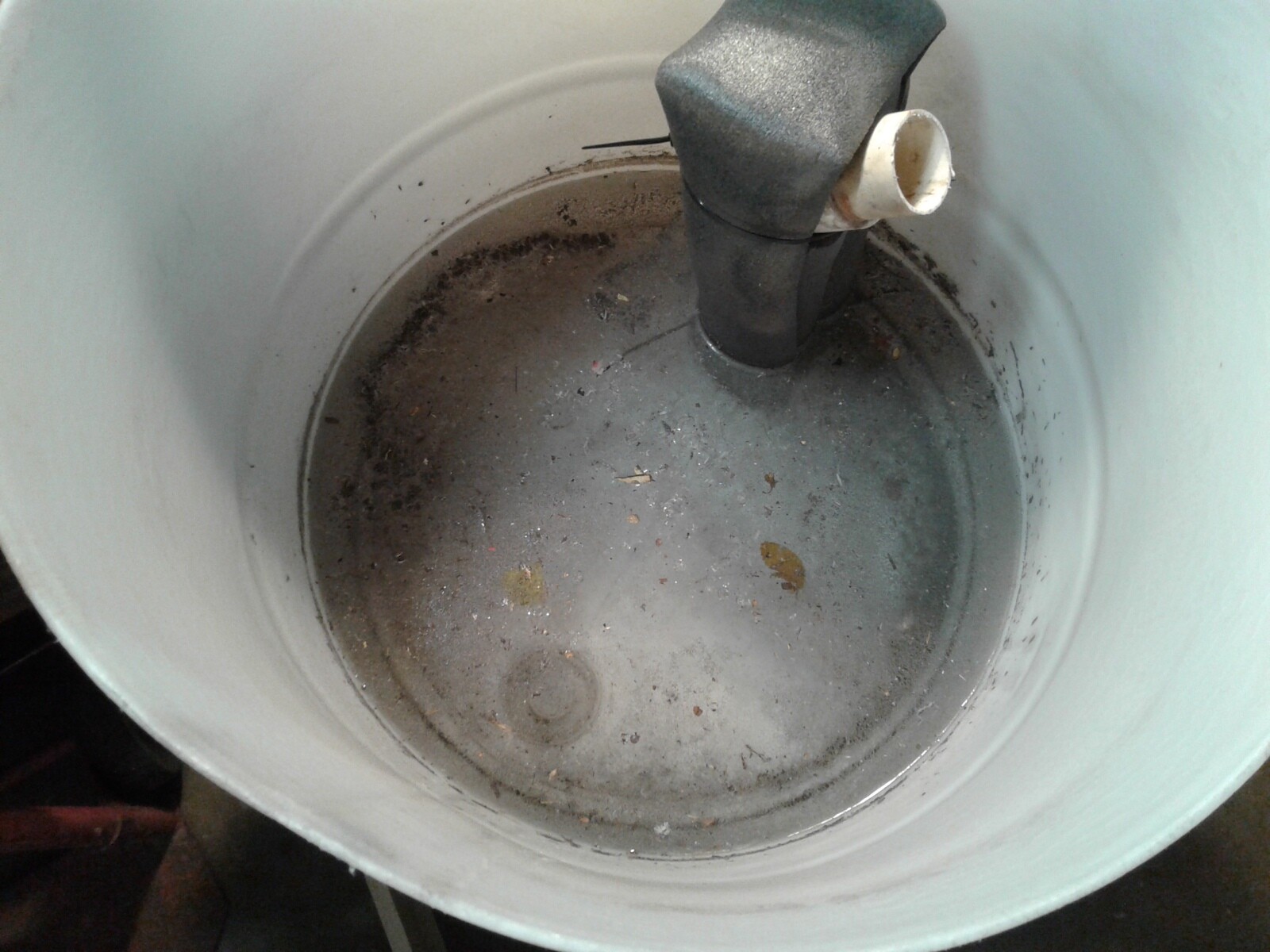 Look down into he bucket rim I realized the only way for water to exit the hay filter barrel was for water to seep around the bucket edge, so I hole saw two holes so water can not build up there when washing my hay down to clean it.