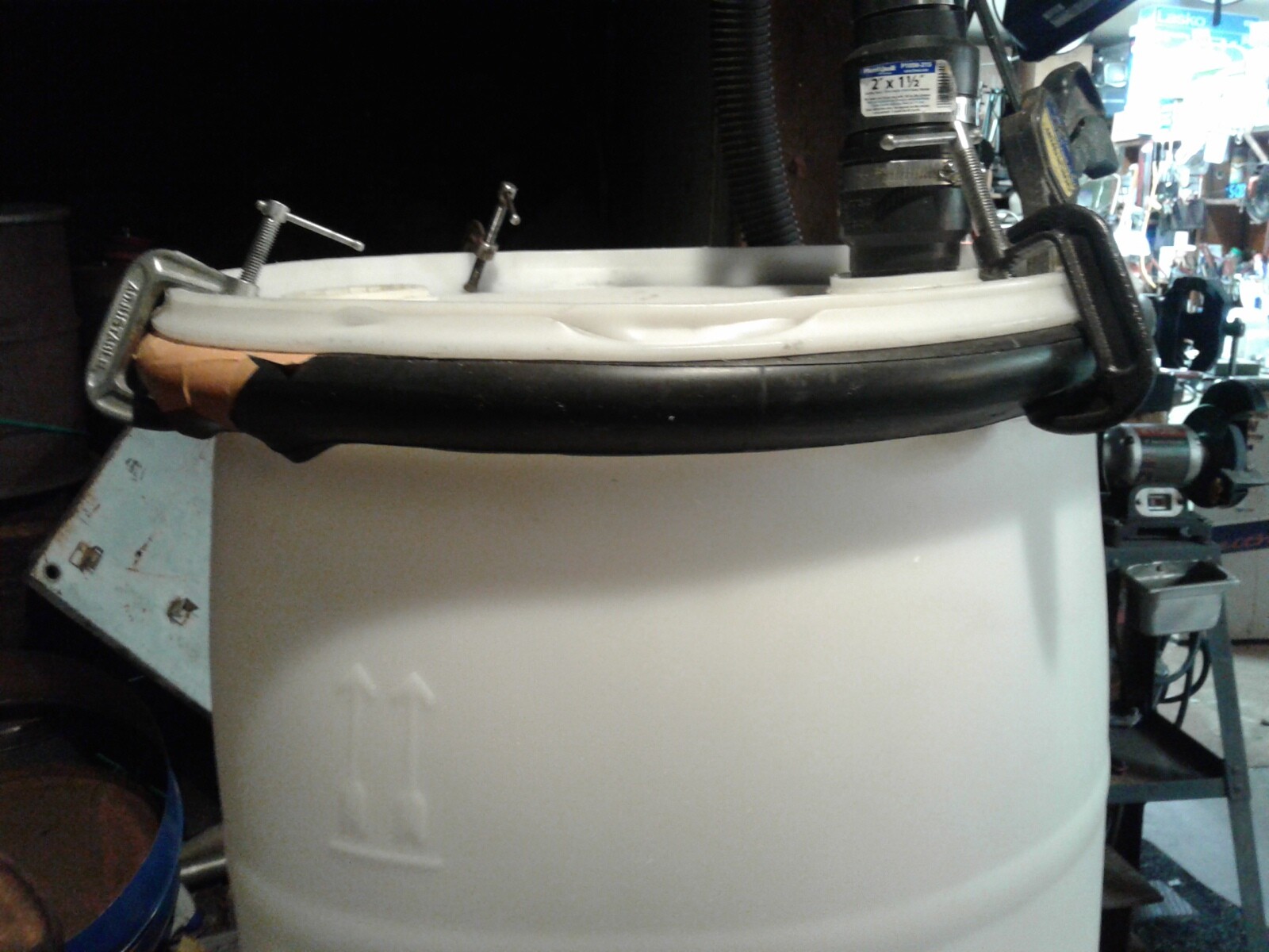 I did some final grinding on the lid for a better fit and now it has a good tight fitting seal when running the shop vaccum. I just might be able to put springs on it to hold the lid in place and for a burb if it backfires for some reason.
