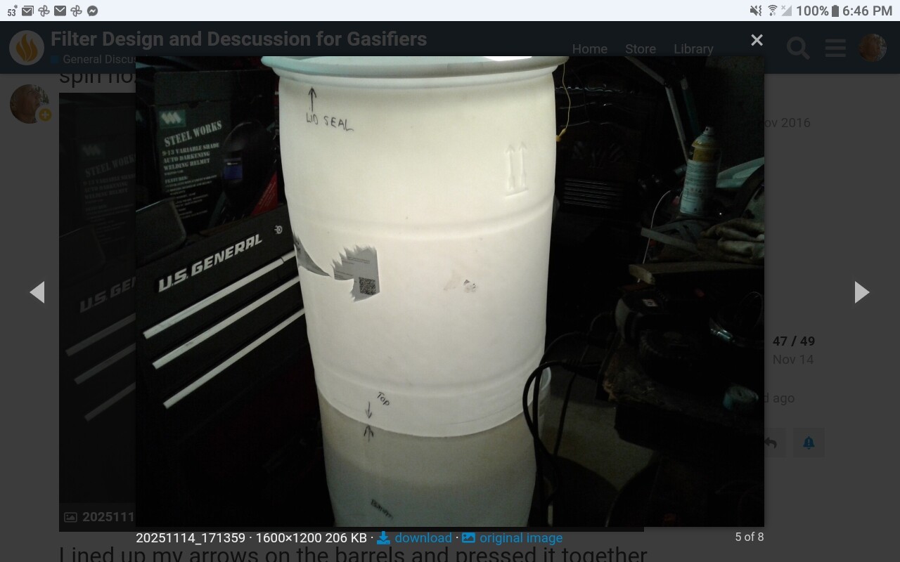 This is the lower part of the barrel that was cut off. This barrel ring keeps the hay filter barrel stable and gives the gas intake pipe and drain plug clearance to remove plug when cleaning out and washing the hay down from the top of the open filter lid.