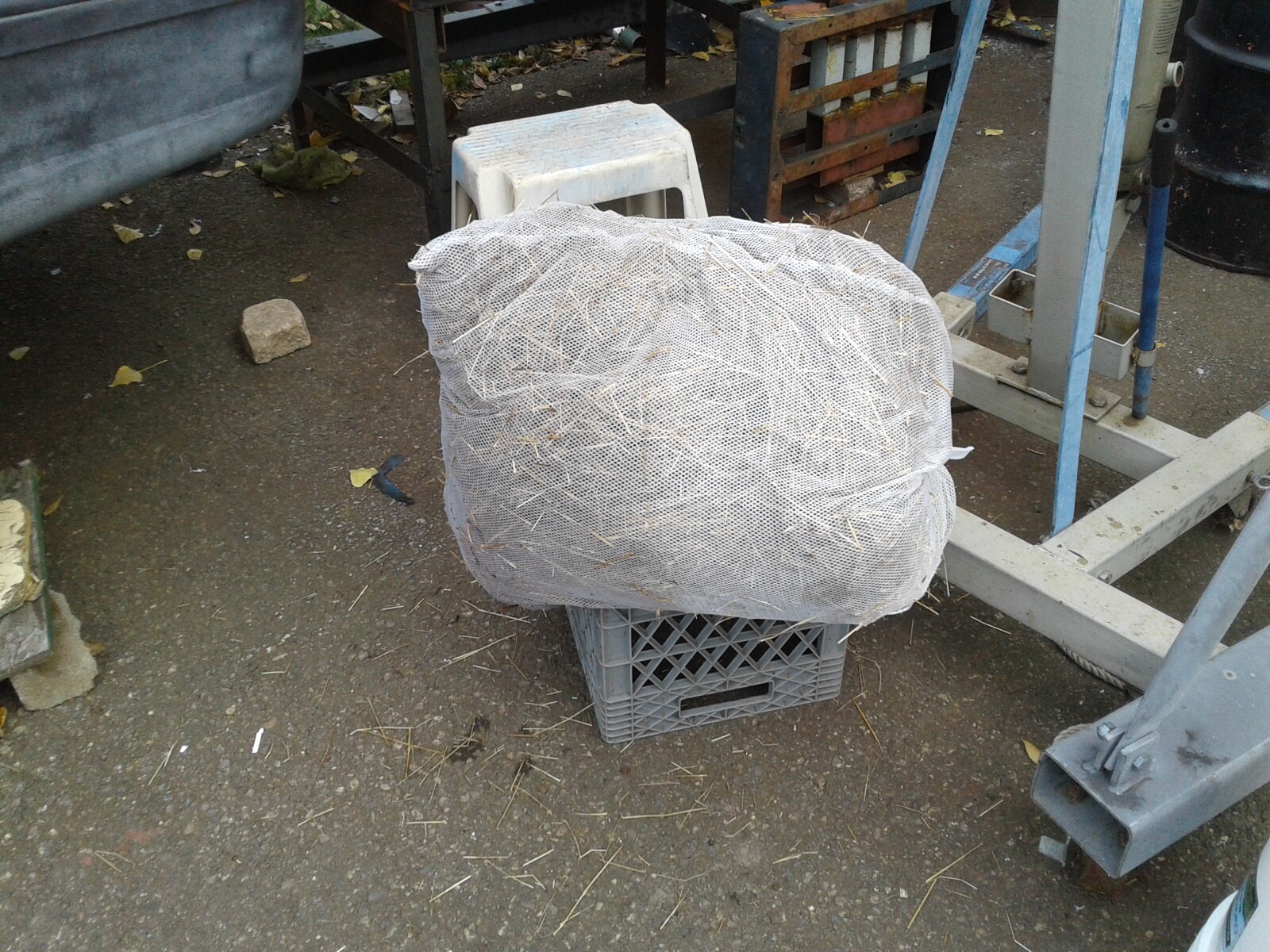 This is the tope of the hay filte barrel laying on top of the hay. I will put more holes in it to a let more gases flow through at a slower flow rate.