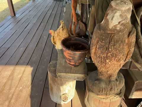 Another one enjoying the sun, pretty sad, the one chicken left, 13 years old. Going to buy some “friends” for her this spring, the egg supply is pretty low…