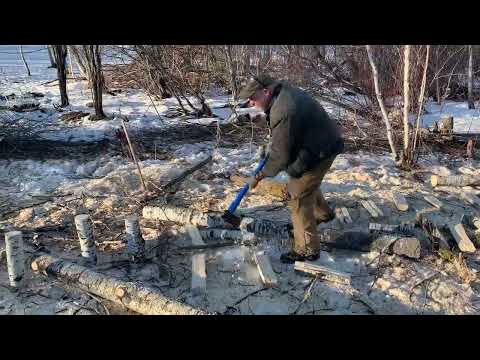 Frozen wood is the magic ingredient for splitting. Some species are just tougher. Green wood generally splits better than dry. I like splitting wood where it fell in the snow, the snow holds it upright, it’s easier to throw the firewood pieces than handle big blocks. I’ll be sad when the cold weather ends, we’ve had some crazy fluctuations, It hasn’t been much of a winter, probably the warmest ever, but it’s looking like there might be a month of good splitting weather off and on, then it will be time to pick it up and stack before the bugs get going, spring is coming…