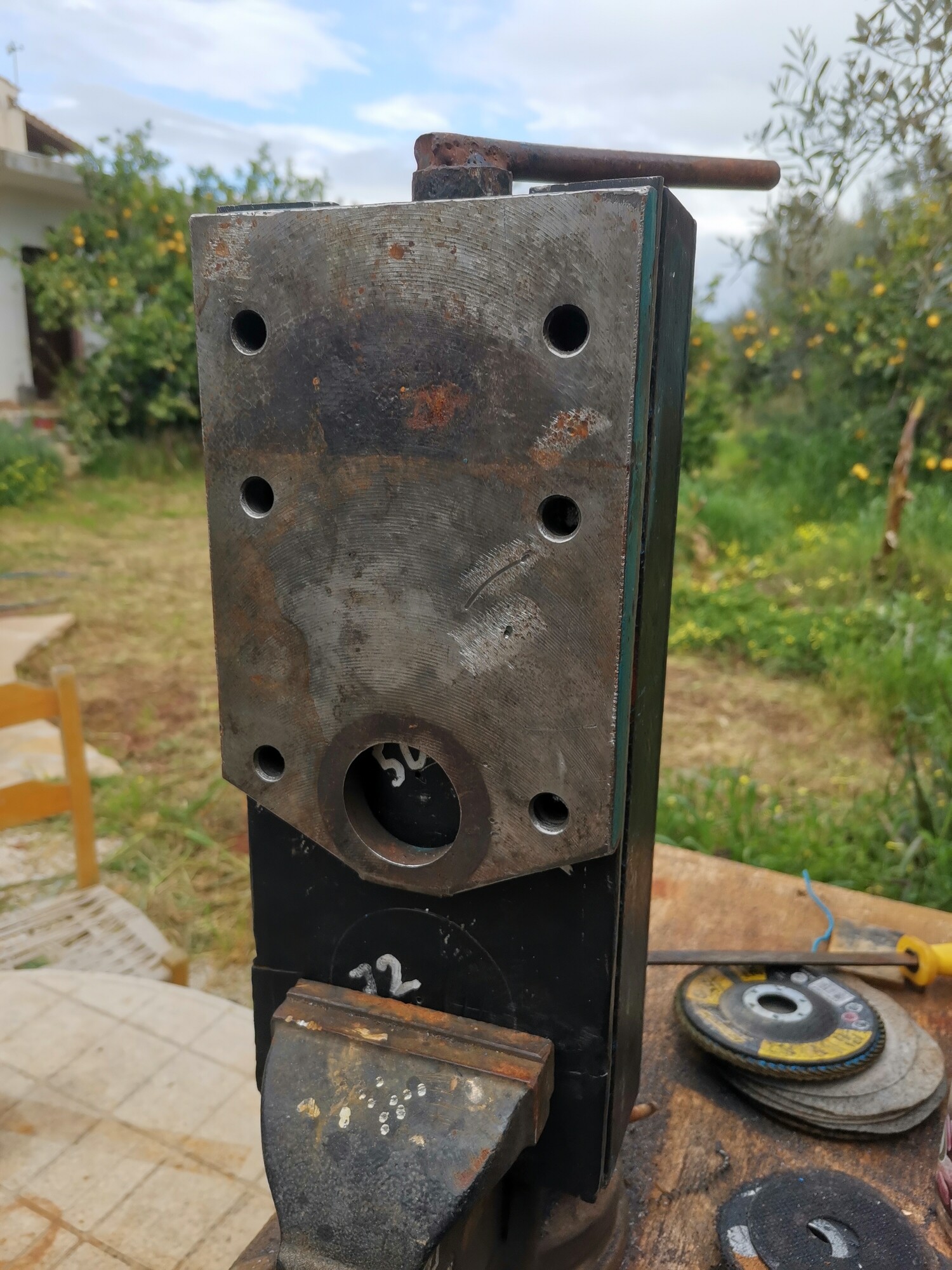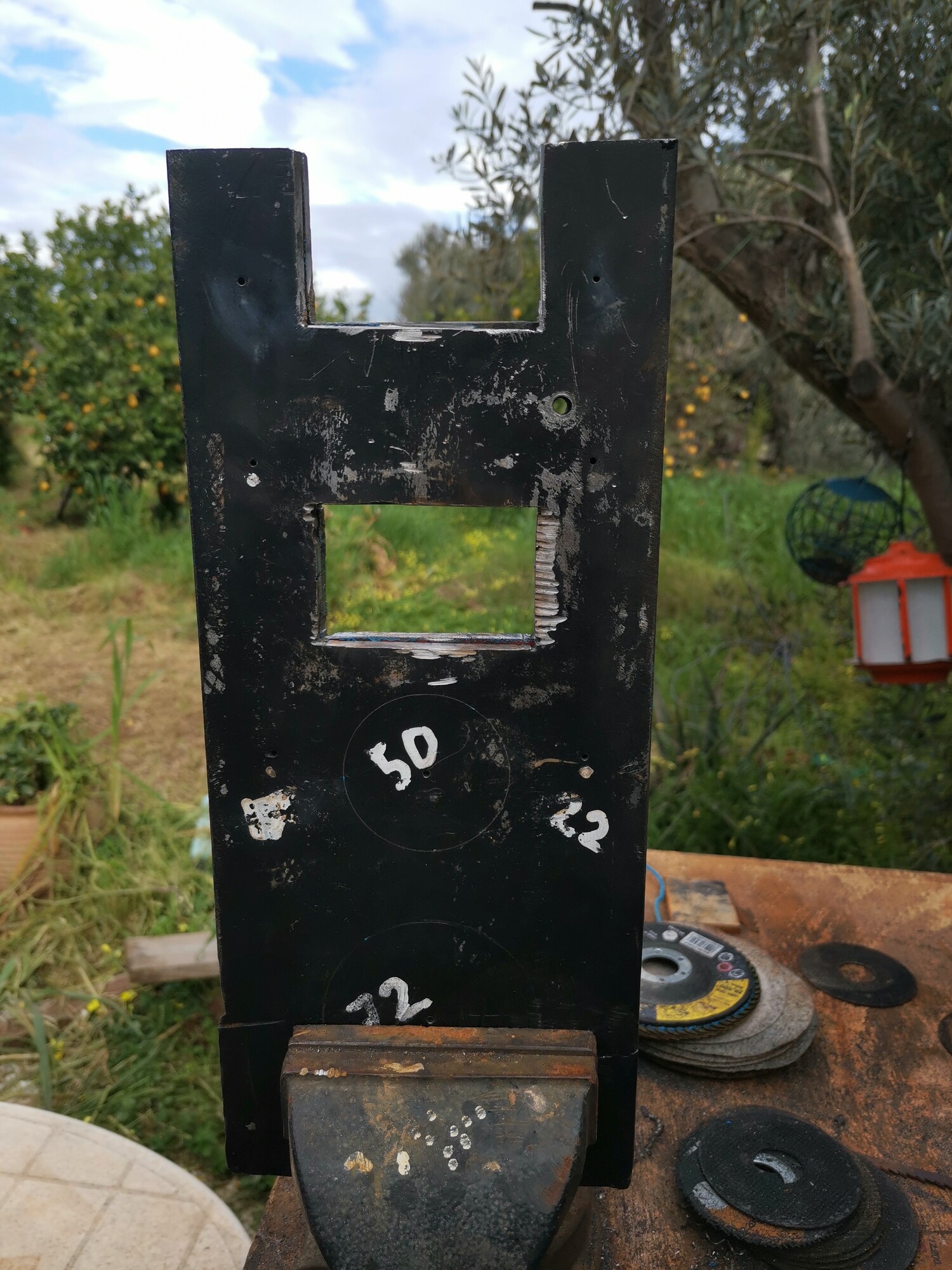 I will still add two horizontal plates with holes of 30mm that will give it all a lot more rigidity. The metal I have for that is 16mm, but I don’t think I can drill that thickness of metal and I don’t own a hole saw of that size either. So I will ask a local machinist for that.