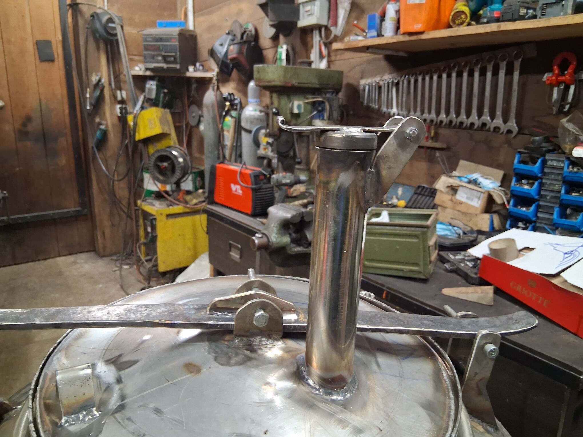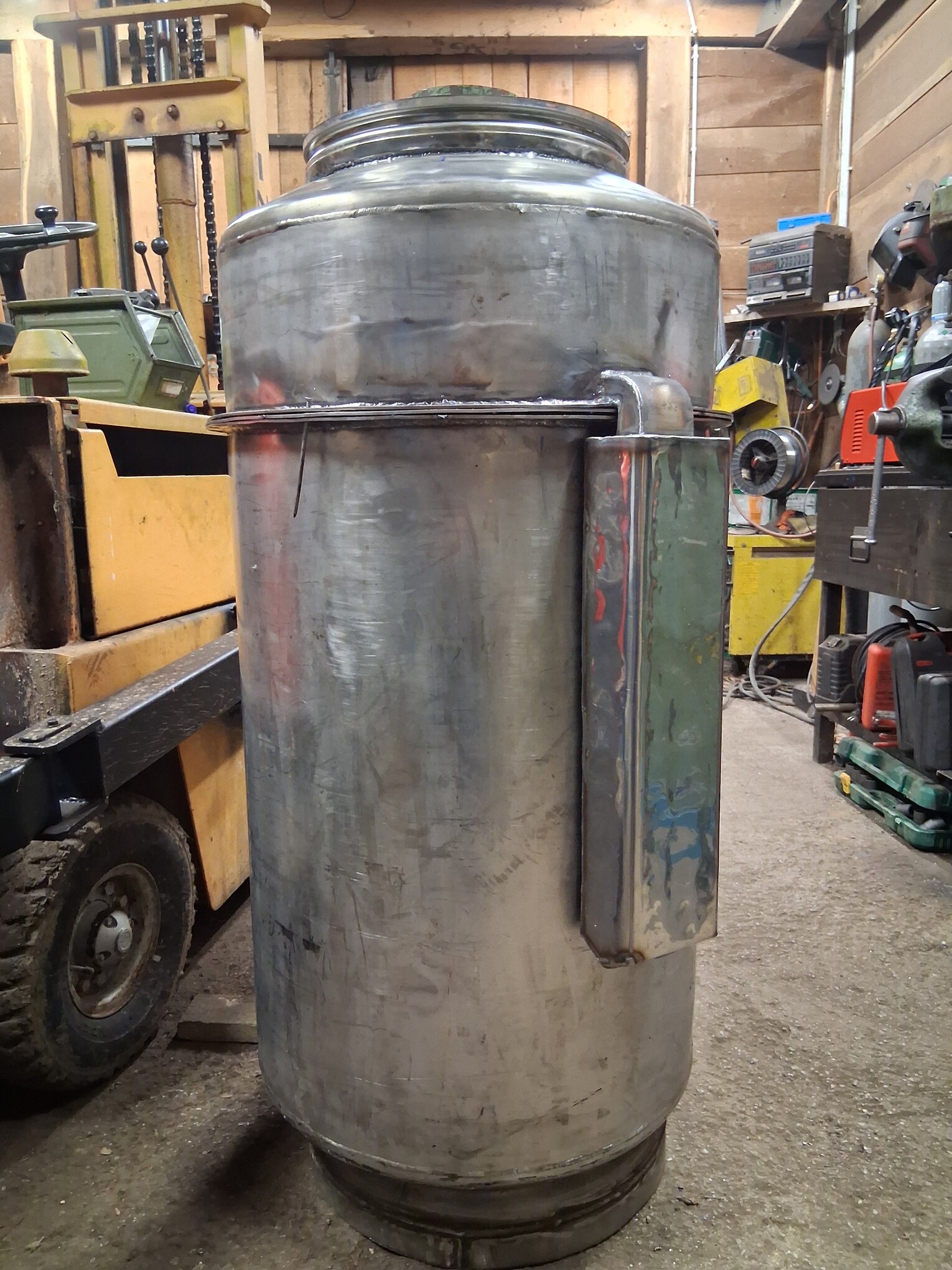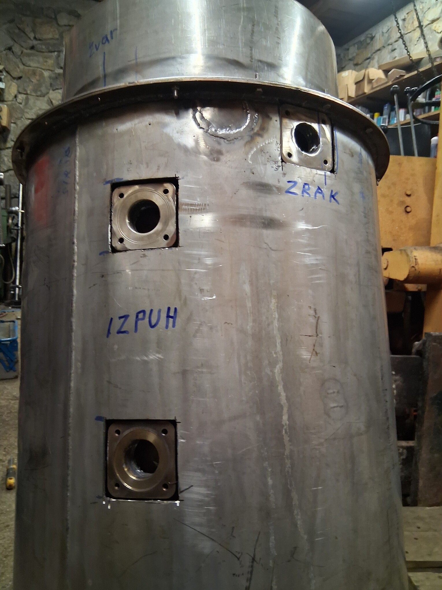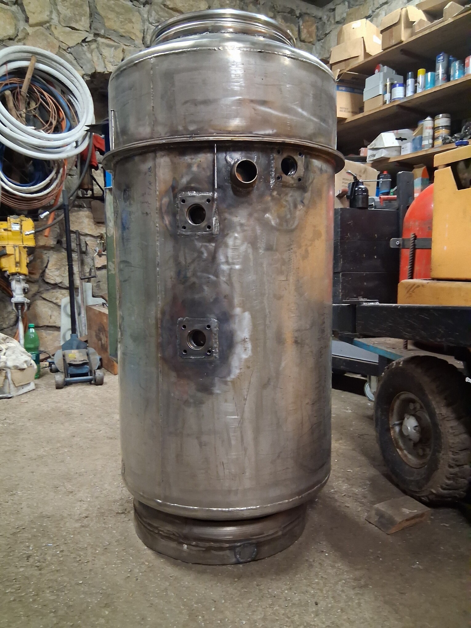 Slowly the gasifier will take on its shape, here I am dealing with the passage of exhaust gases through the outer shell and with the supply air.