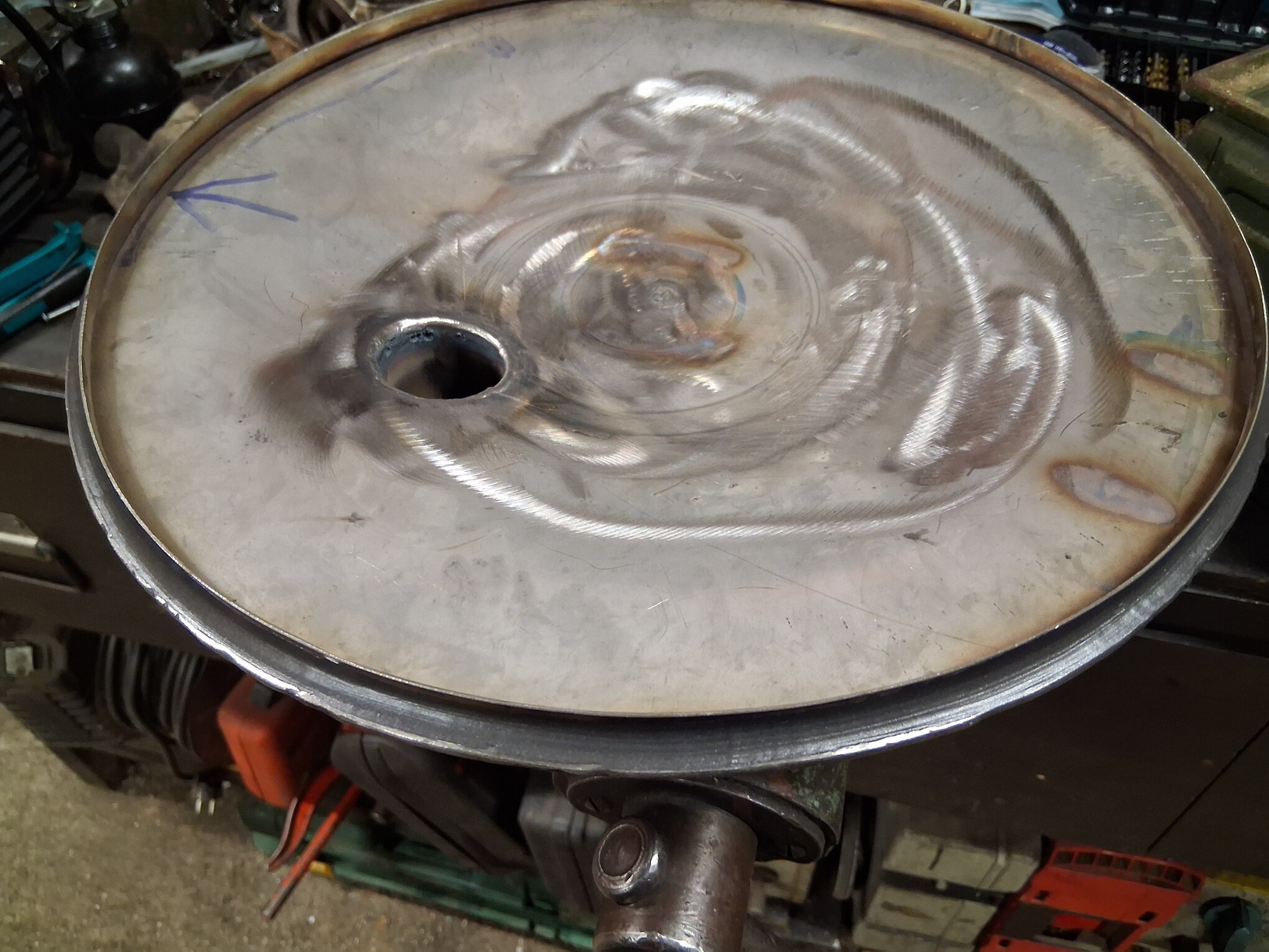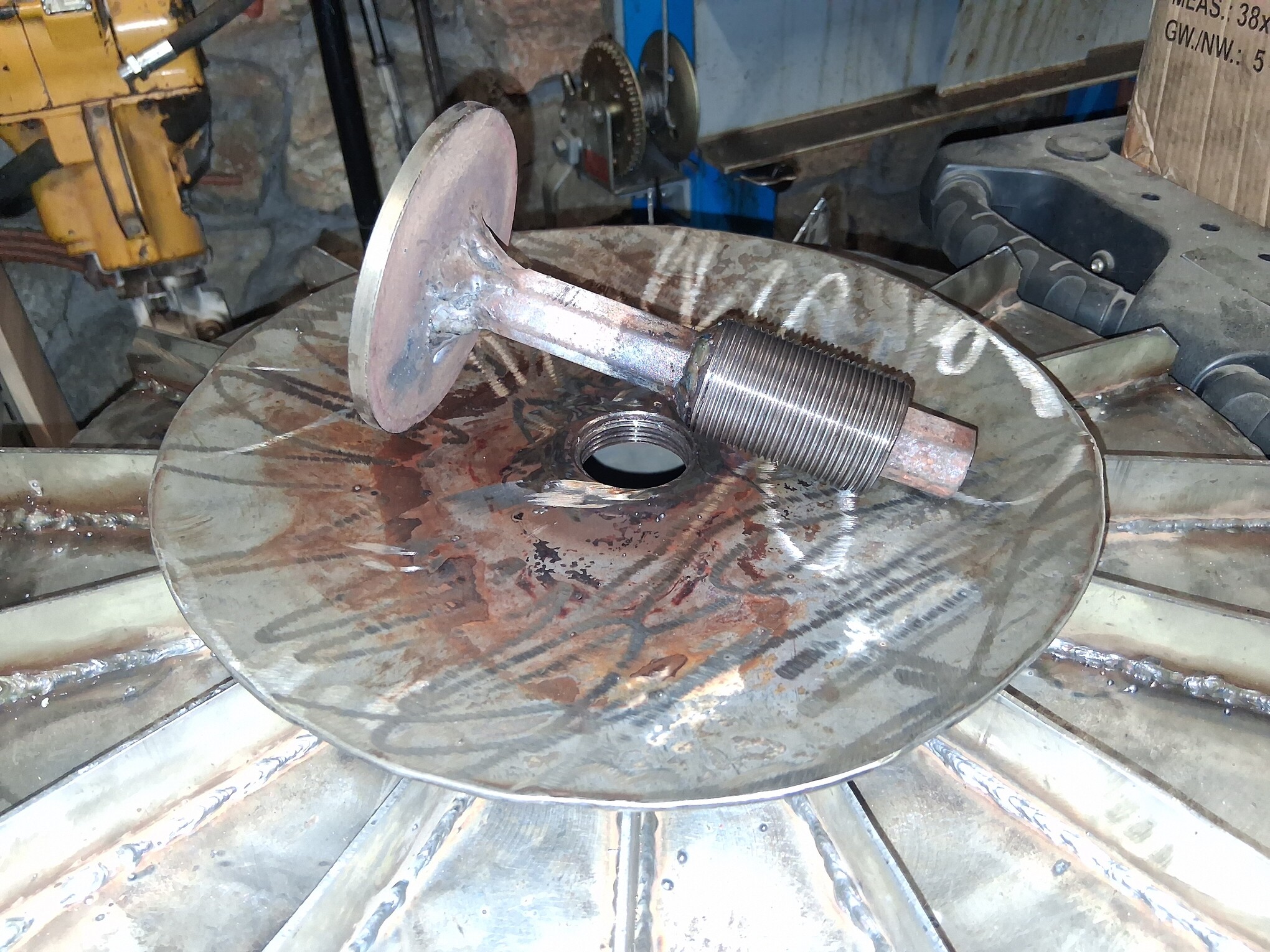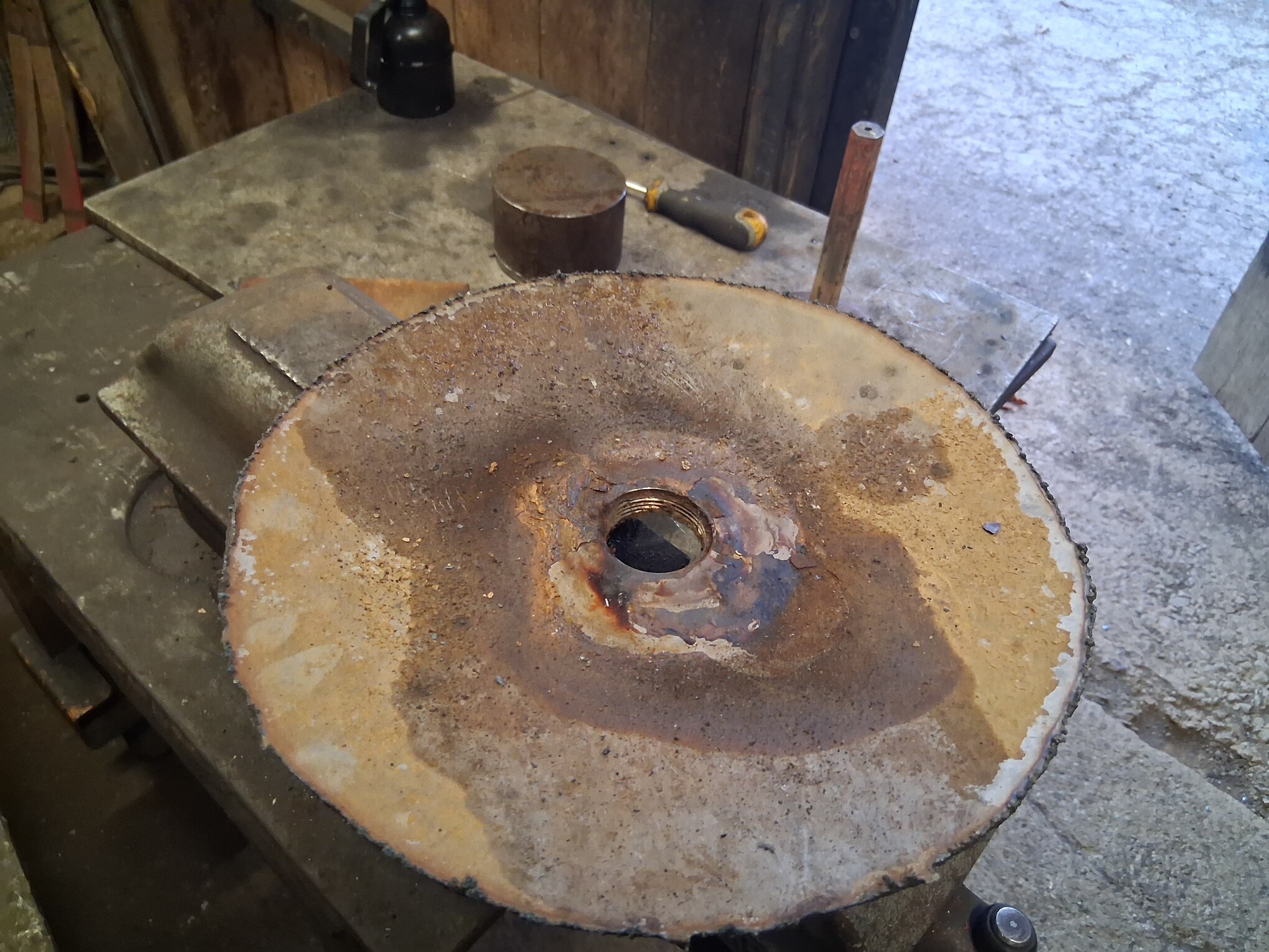 I cut this piece as an ash cleaning hole, so it is smaller in diameter than the hole, and has a 5/4" thread in the center.