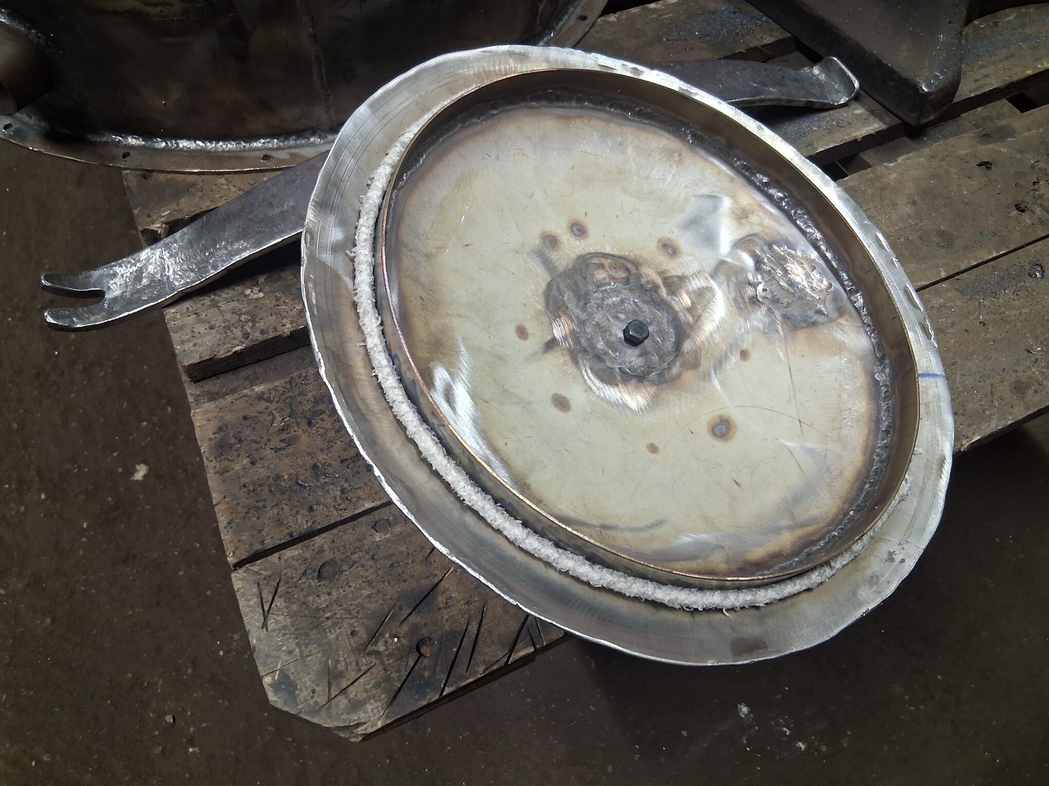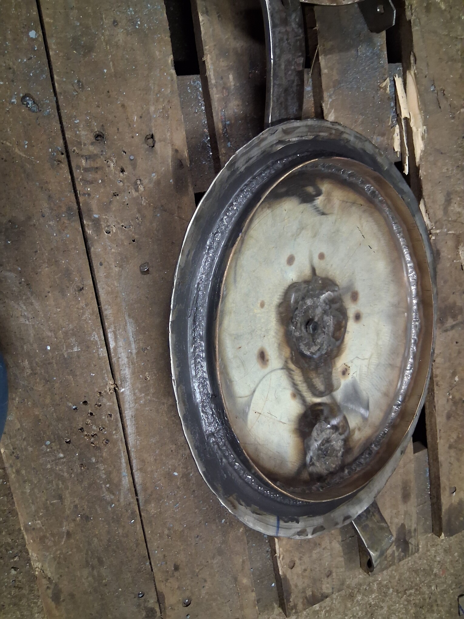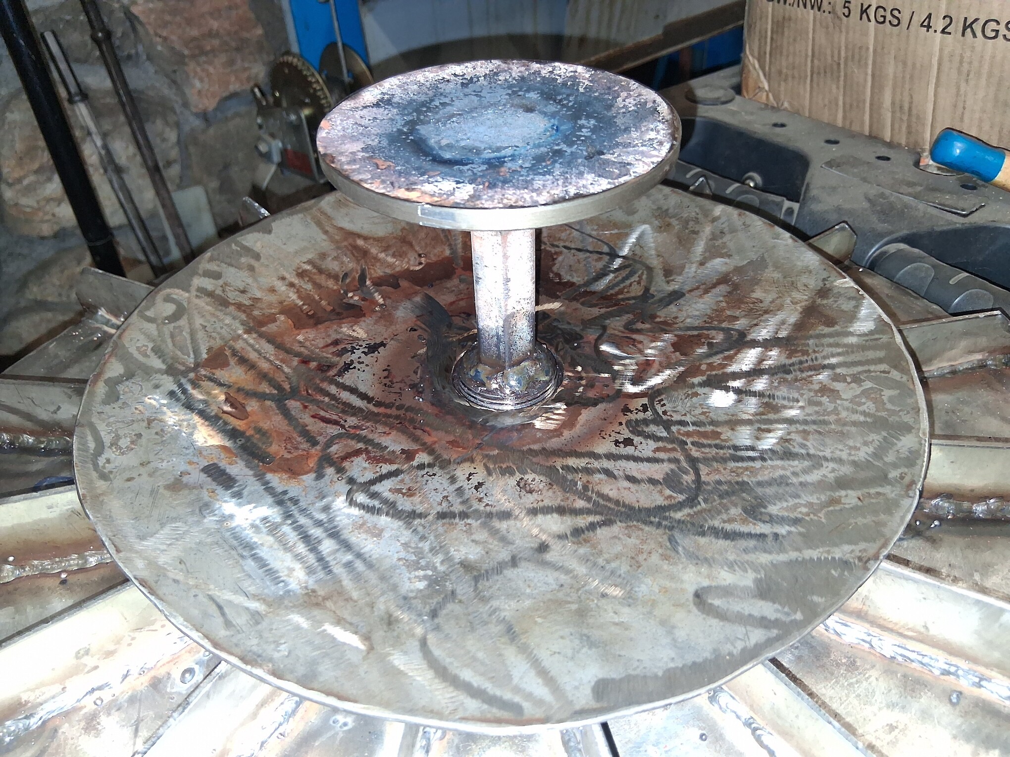 I cut this piece as an ash cleaning hole, so it is smaller in diameter than the hole, and has a 5/4" thread in the center.