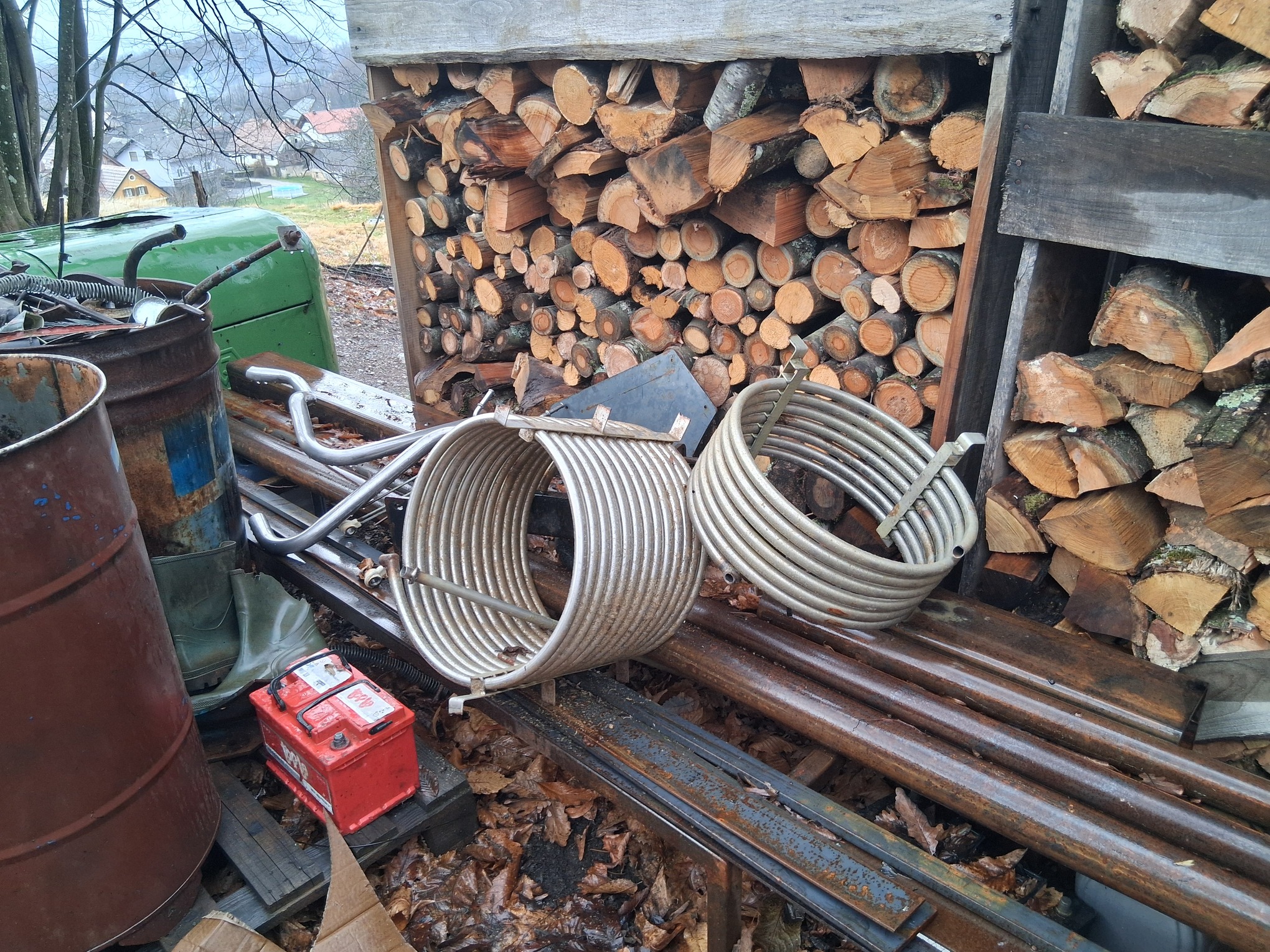 It Is great to have a pile of scrap. However, when I see coils like that my mind turns to condenser for distillation but those may be aluminum not stainless so drinkability would not be safe. However I think it is okay for wood distillates for like wood vinegar.