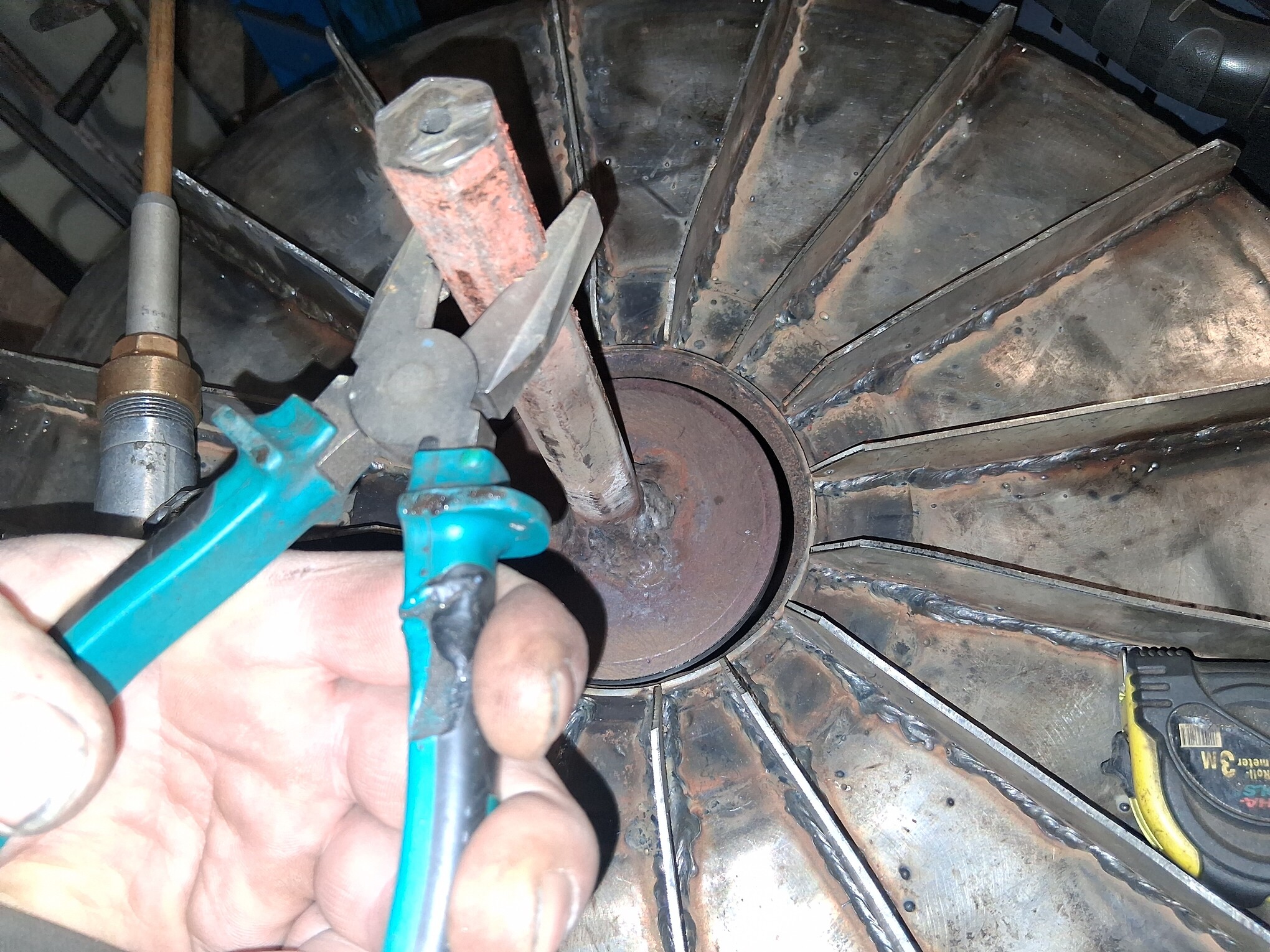 I cut a piece of spring steel from a plow board and welded it to a drill bit with a hard-welding electrode. This piece will probably always be exposed to high temperatures during the operation of the gasifier.