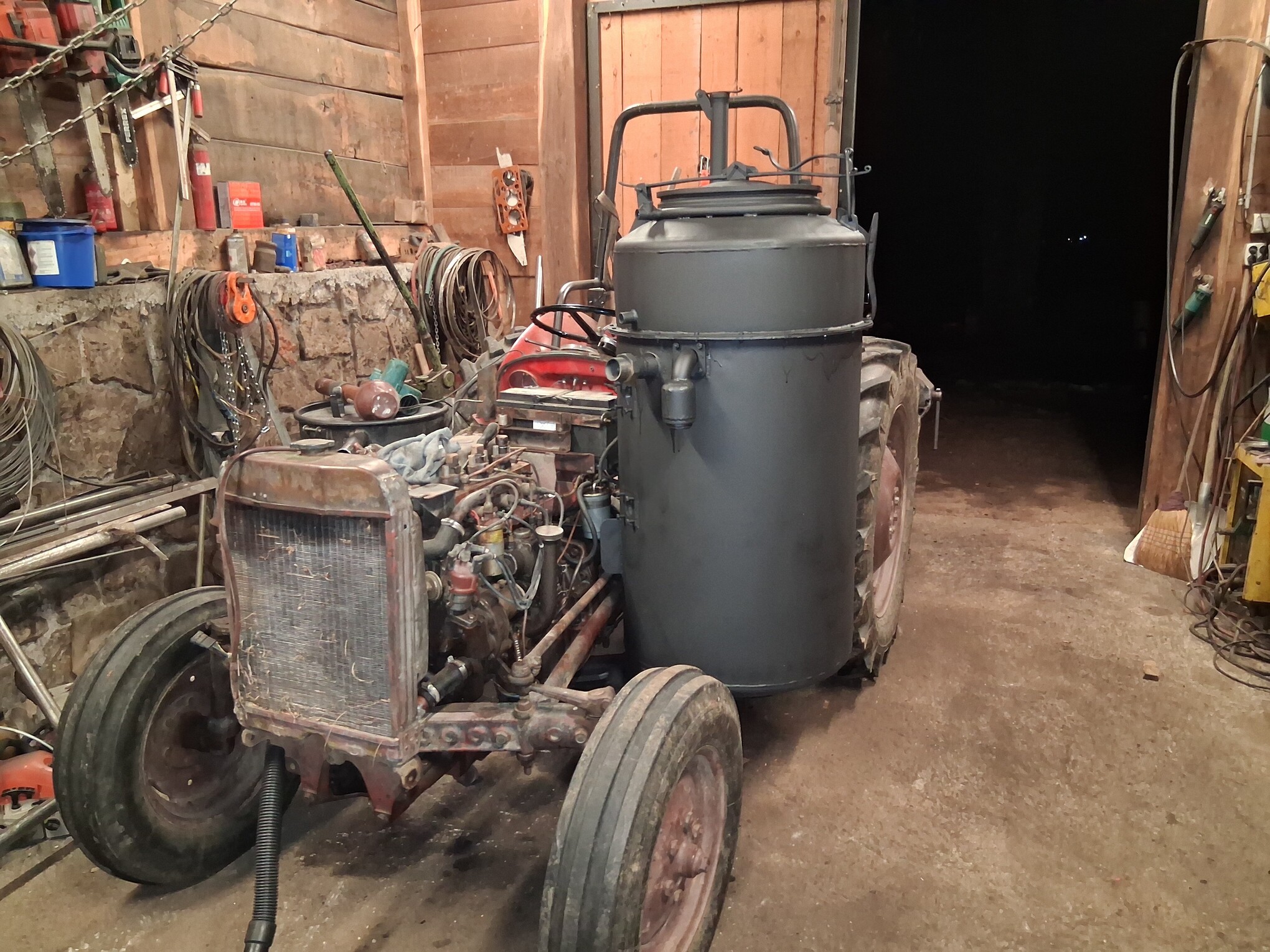 “The light at the end of the tunnel has come on”,… finally the gasifier is in place, I still need to connect the exhaust system, cooling water and the wood gas pipe to the refrigerator.