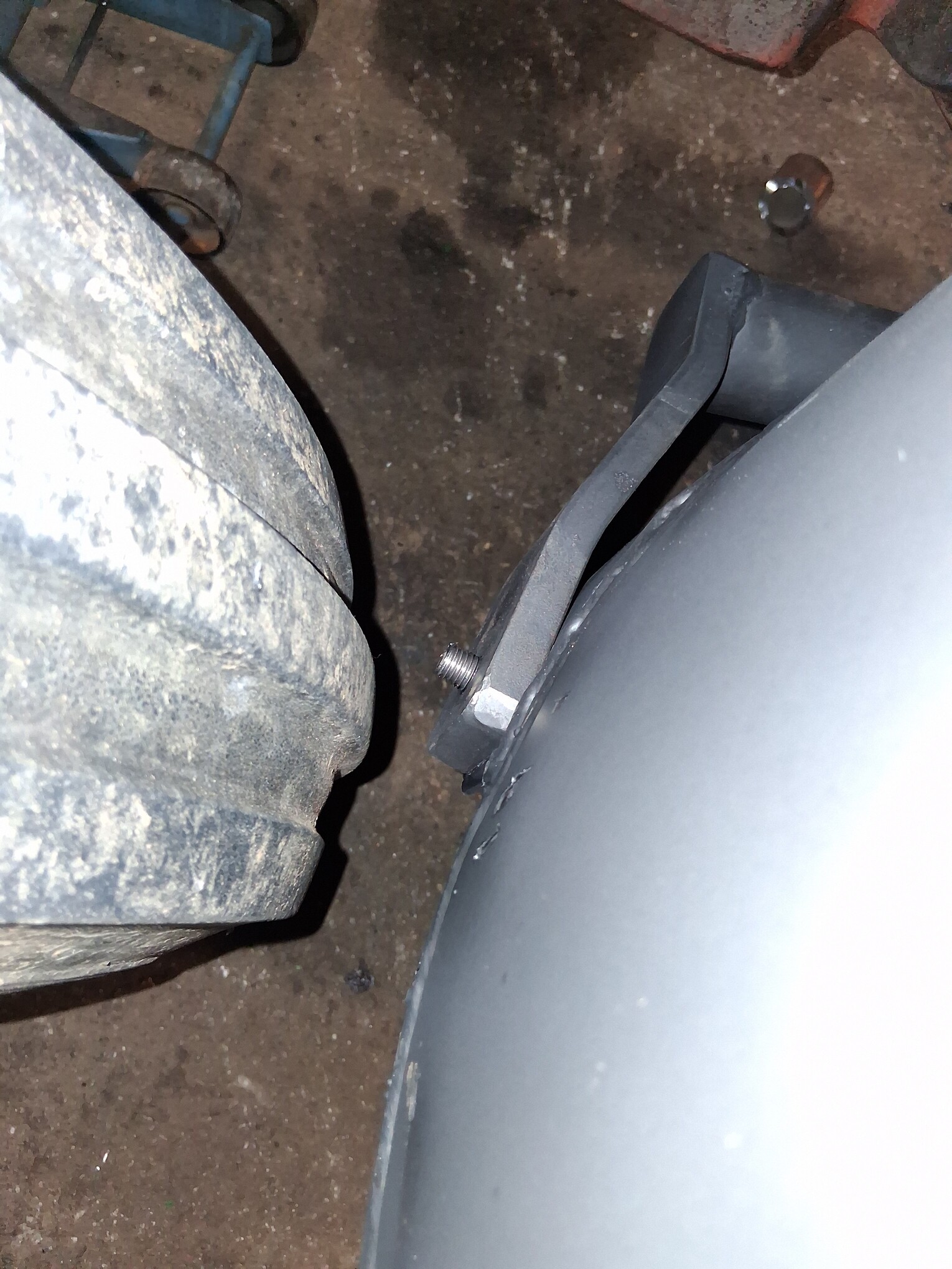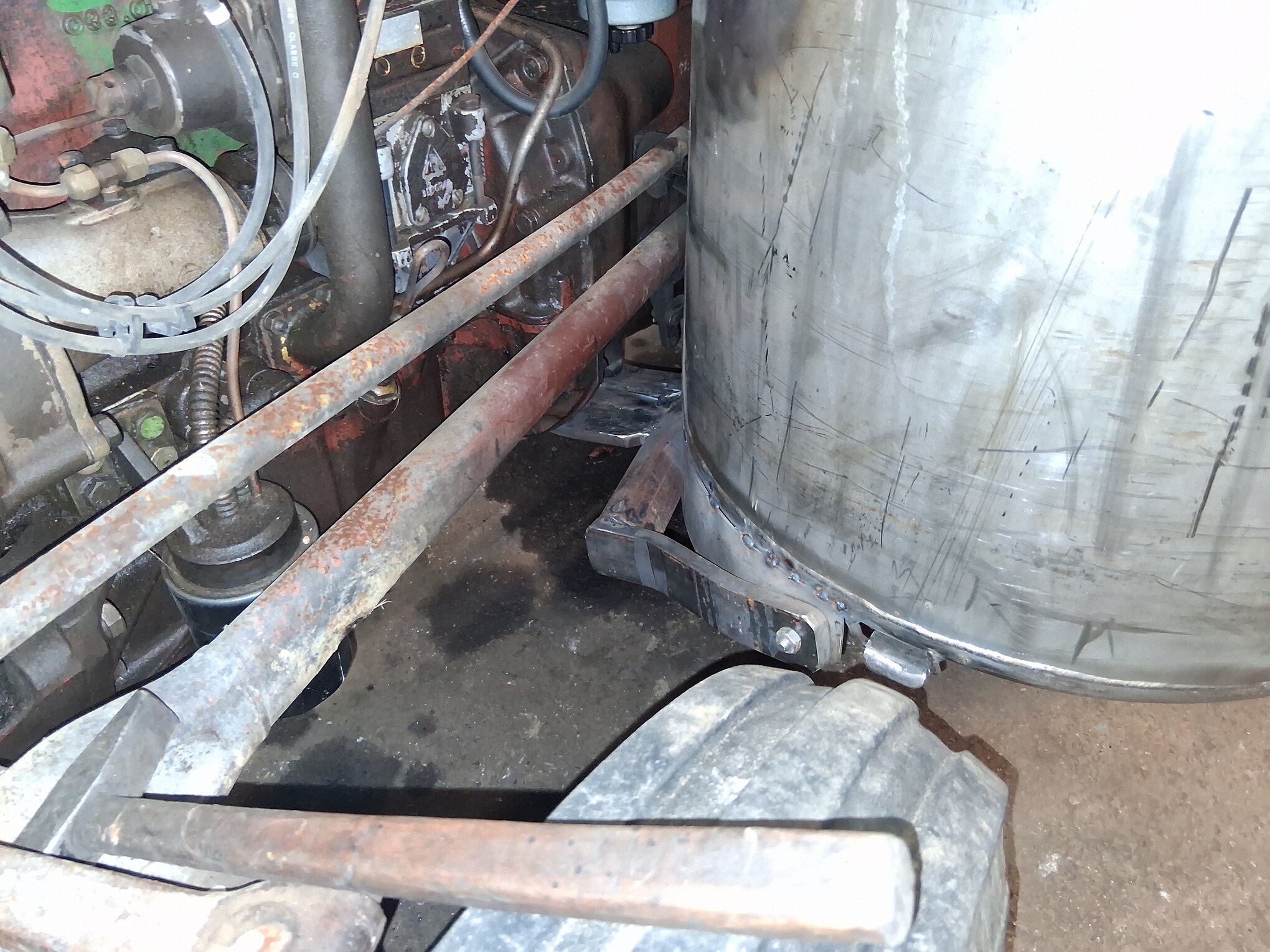 Sean, the picture better shows the clearance of the front wheel from the gasifier, when I raise the front of the tractor, tilt the front axle and turn the wheel it reaches the closest distance - one inch.