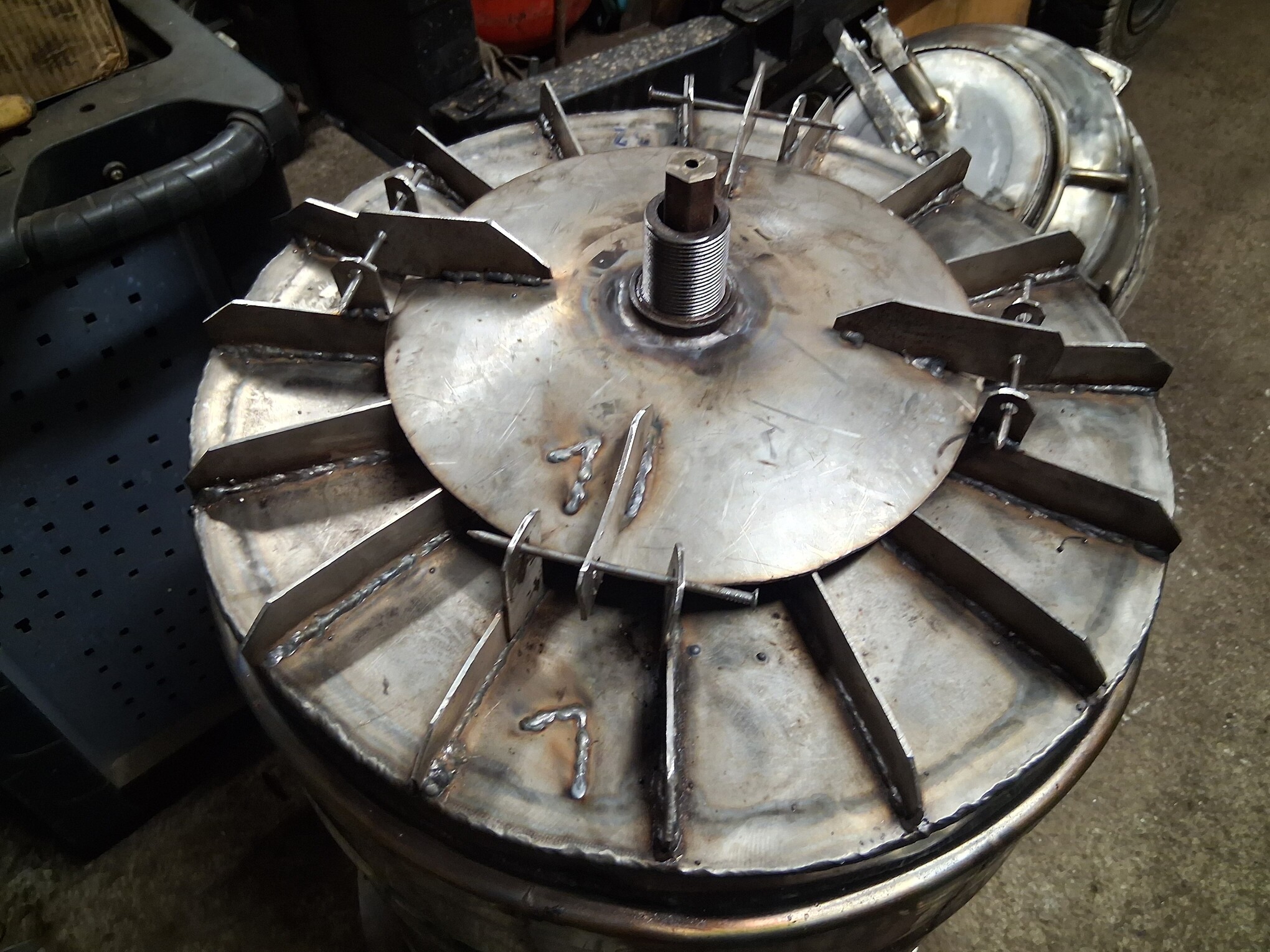 This is what it will look like from below, for now I will not make any holes in the bottom plate, I think the gas flow will carry away the ash without any problems, and the hot gas will move along the metal ribs, so some of the heat will return to the process