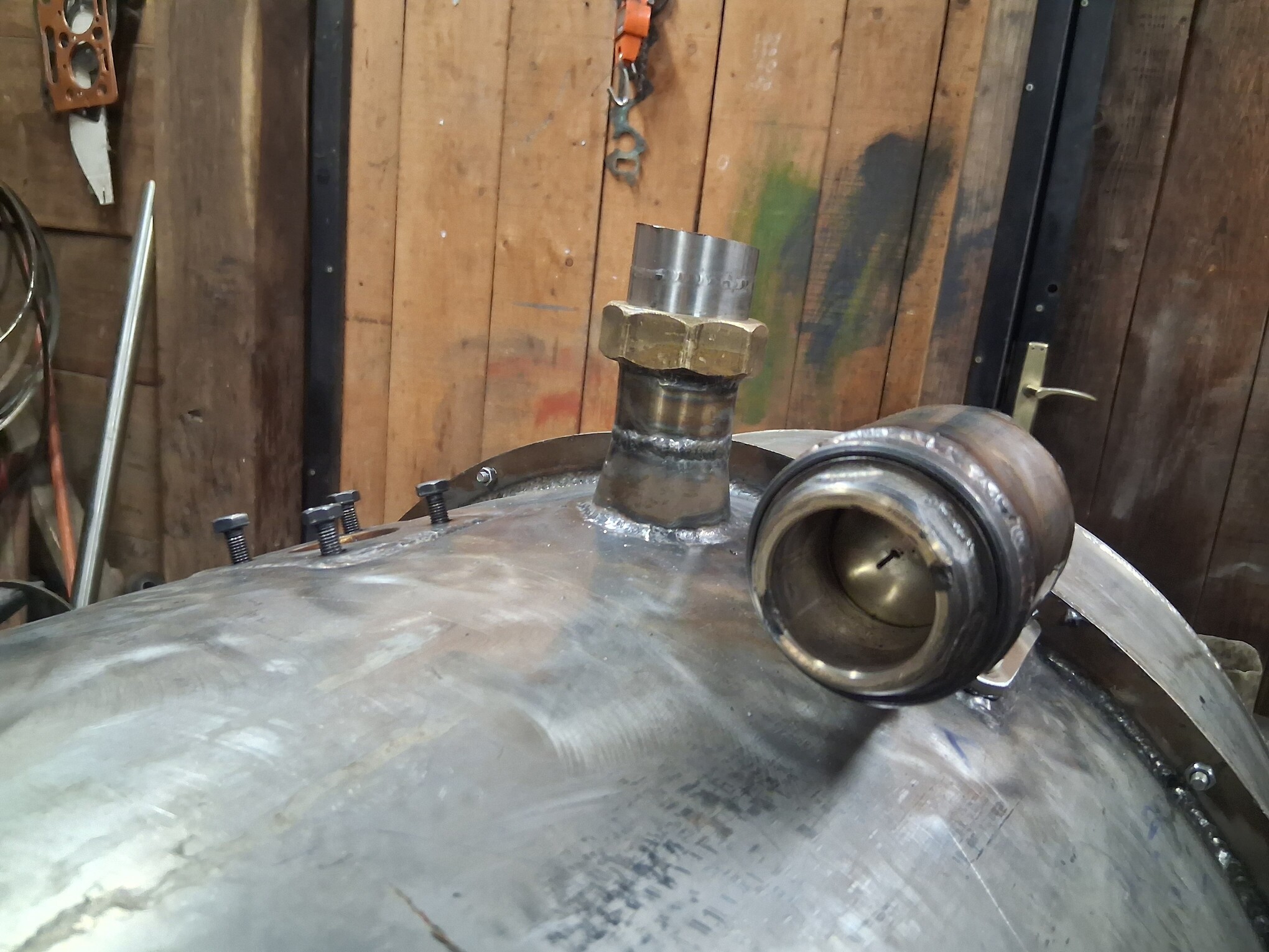 There is no great progress in “decorating” the gasifier, I only installed the gas outlet connector and the already familiar style of non-return valve, which has a closing element from the bottom of a beer can.