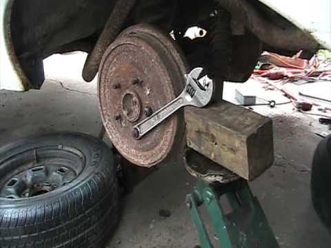 Trying to get the brake drums off the axle… man what a pain! I’ve beat on this side till I’m about wore out, and only got it this far. Can’t’ see what the hold up is, just the shoes grabbing it I guess. Just a few more licks and I’ll have it off (I hope!)